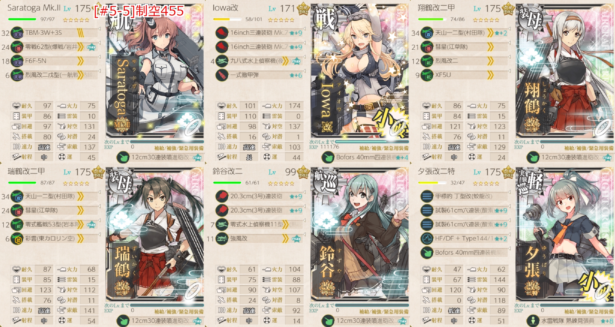 Iowaの中破が気になってましたがレ級なしなら問題なし 昼戦S勝利は逃しましたが最後はIowa。