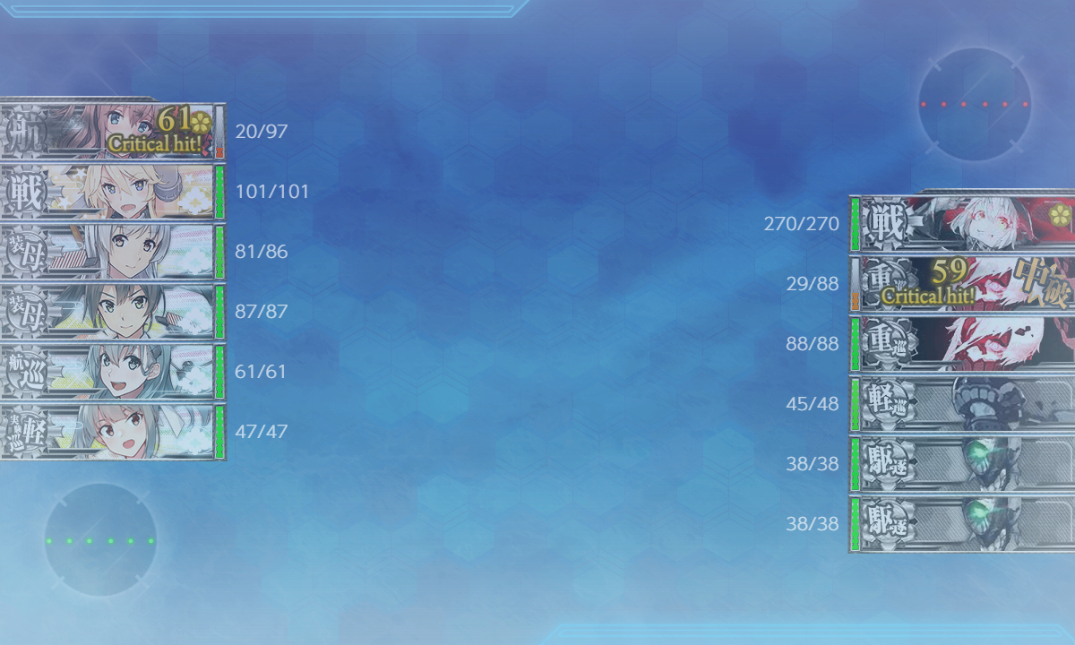 無かったですねw 加賀さんは両方を試しましたが道中重視なら護、ボスマス重視で(夜戦まで無事なら)戊と