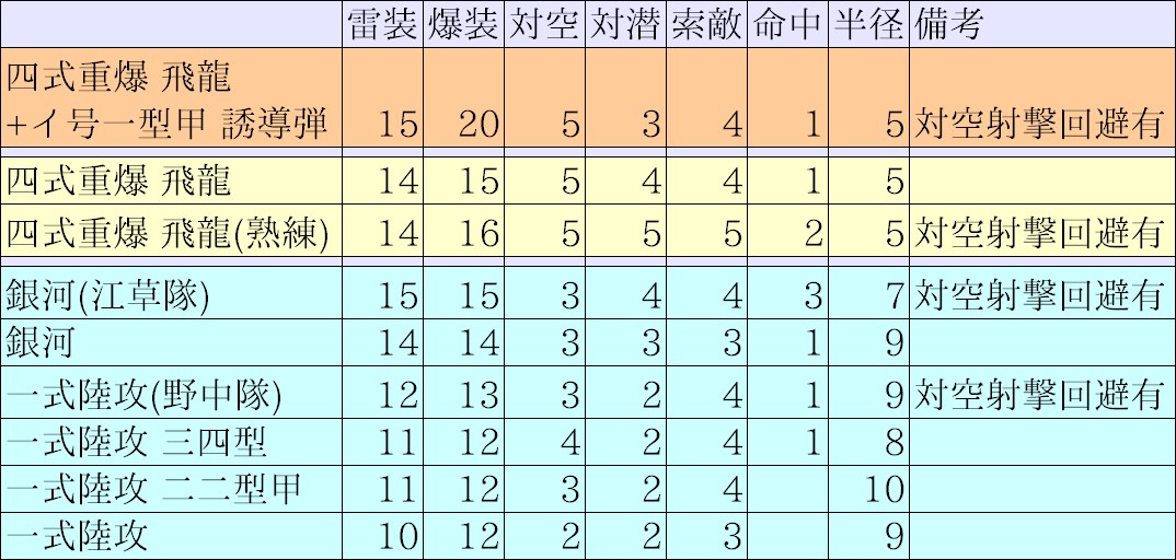 なんにせよ優秀な陸攻なので嬉しい。行動半径が5なのはちょっと気になりますが延長も出来ますし当たり装備でしょう。