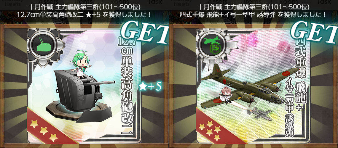 今月も無事貰えました(・v・ )"四式重爆 飛龍"が武勲褒賞だった時ももう片方が松砲でしたが何か意図があるんでしょうか。