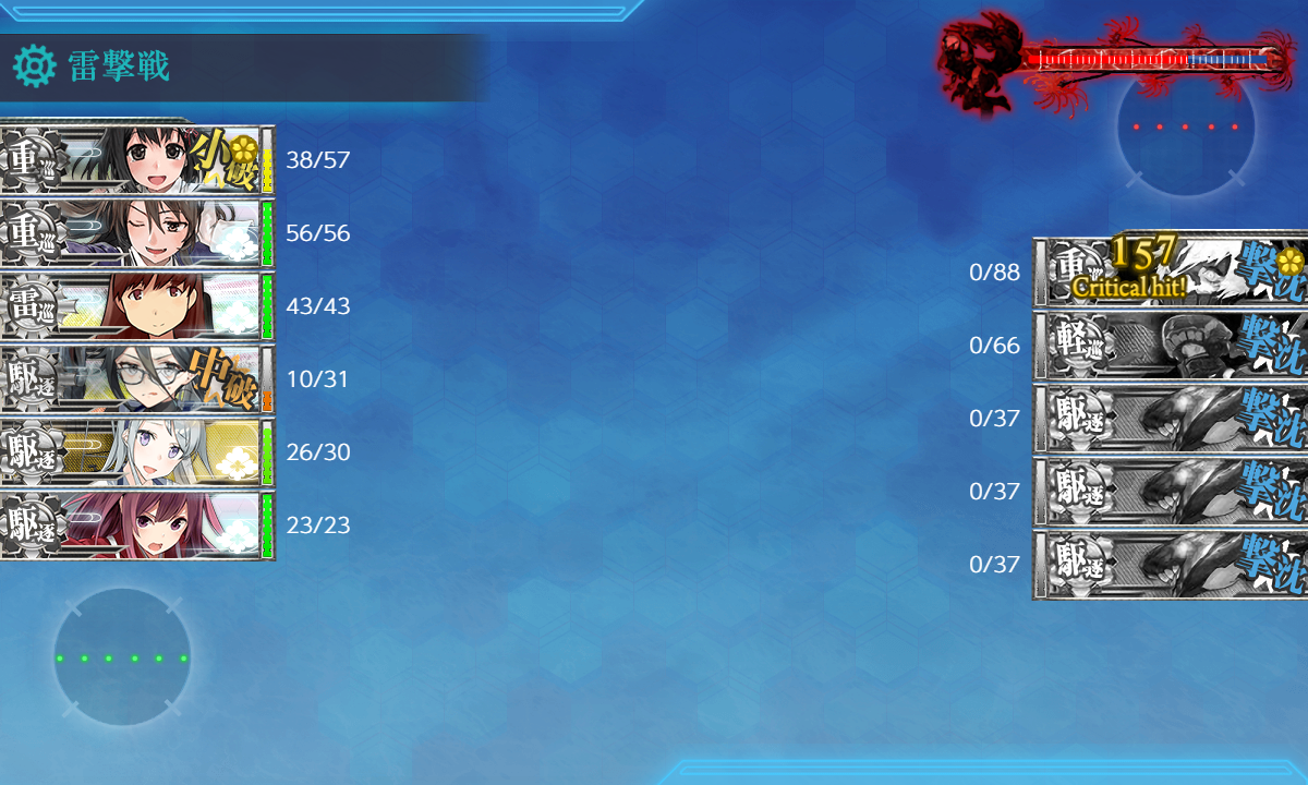 ストレートクリア。 5-4での【僚艦夜戦突撃】がこんなに当てになるとは嬉しい想定外です。