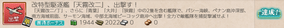 ウィークリーの【節分任務】は終わりましたが最後の出撃任務、「天霧改二(丁)」任務をやっていきます。