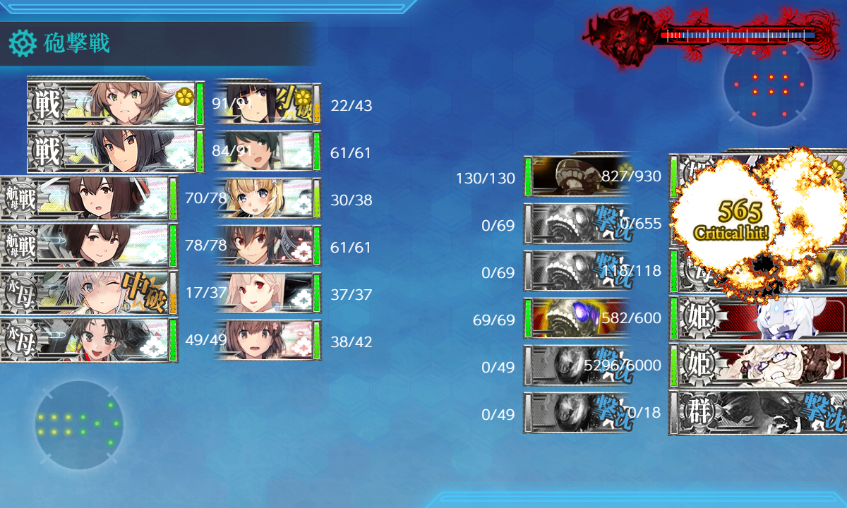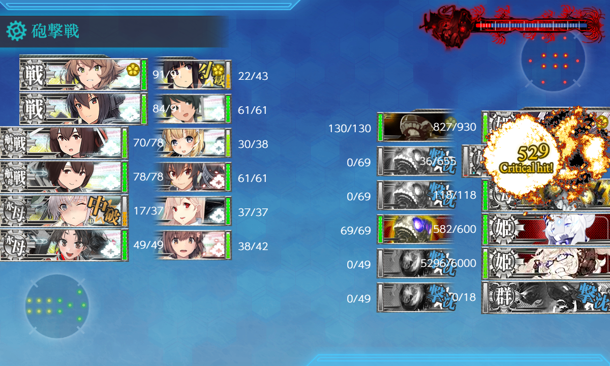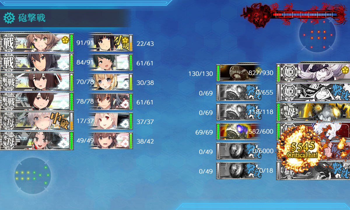 1,2発目で"防空埋護姫"を撃破して3発目で"集積地棲姫III"を撃破したので後は順当に撃破していくだけでした。