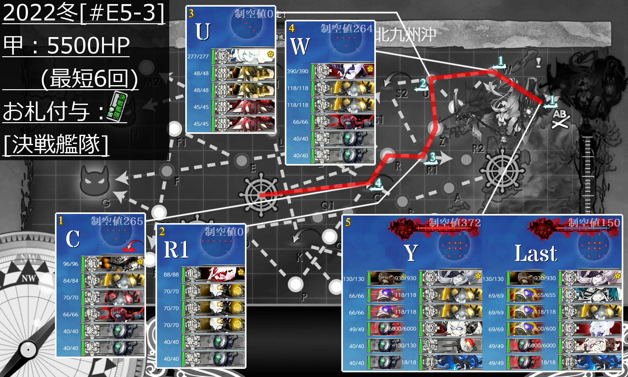 つい先ほどE-5-3突破し、今回も無事ALL甲クリアできました。