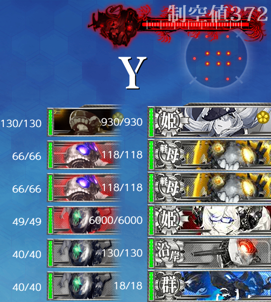 - 制空値 最終形態ではボス(Y)の制空値が大きく下がるので出撃時の制空値200程度で充分。