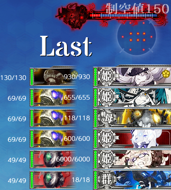 "空母棲姫改"や"戦艦棲姫改"といった硬い姫級がいないのでむしろいつもの最深部より楽かも知れません。