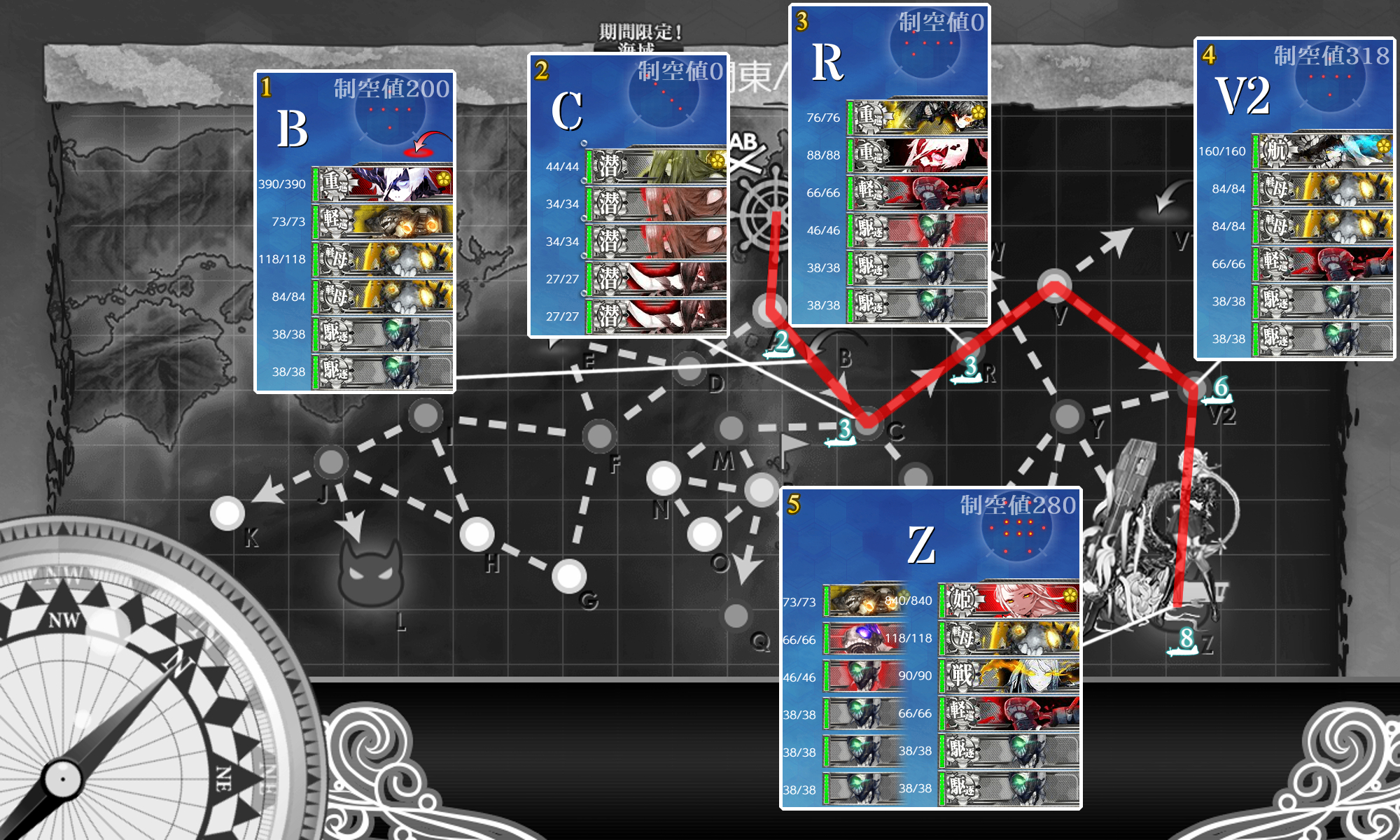 そこまで稼げばボス前(V2)もボス(Z)も勝手に航空優勢になります。