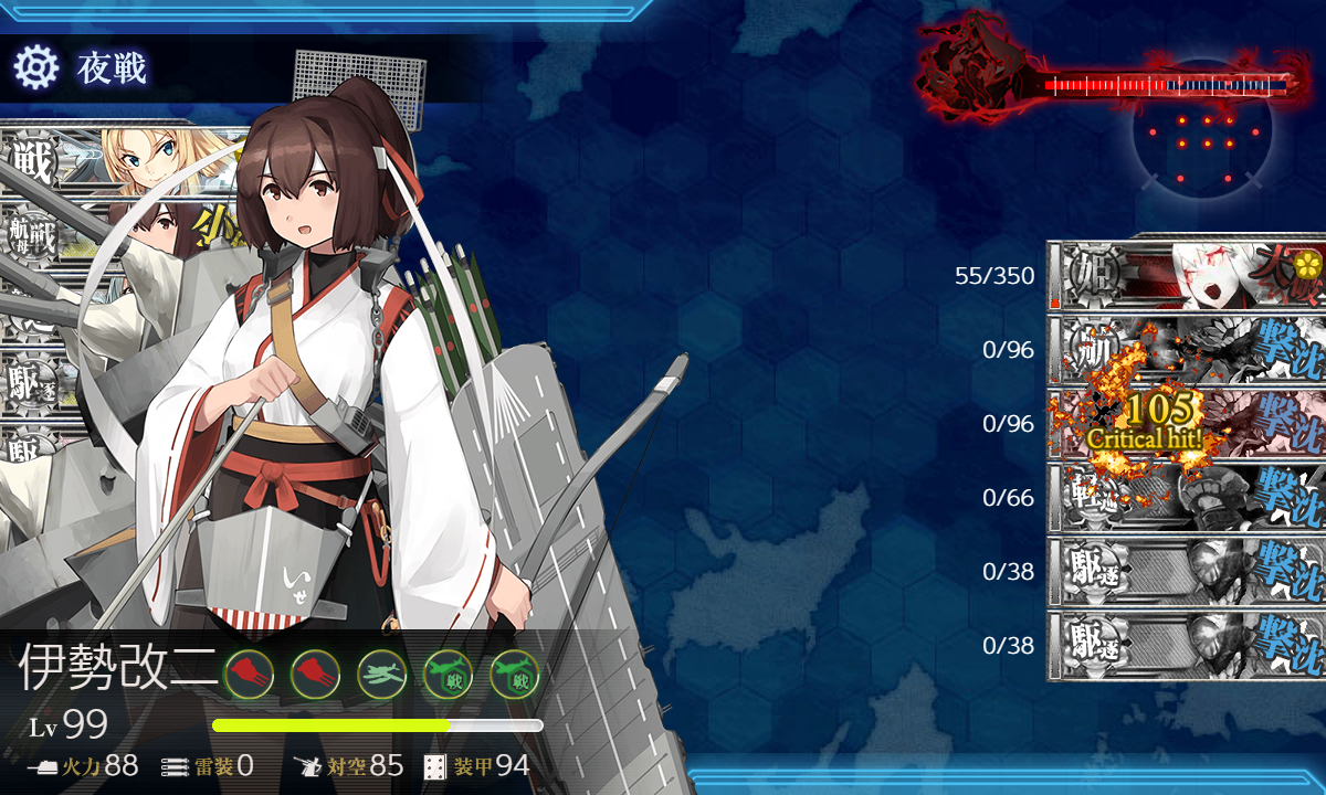 細かな被弾が蓄積してきましたが火力を通して昼戦END 最後は伊勢。