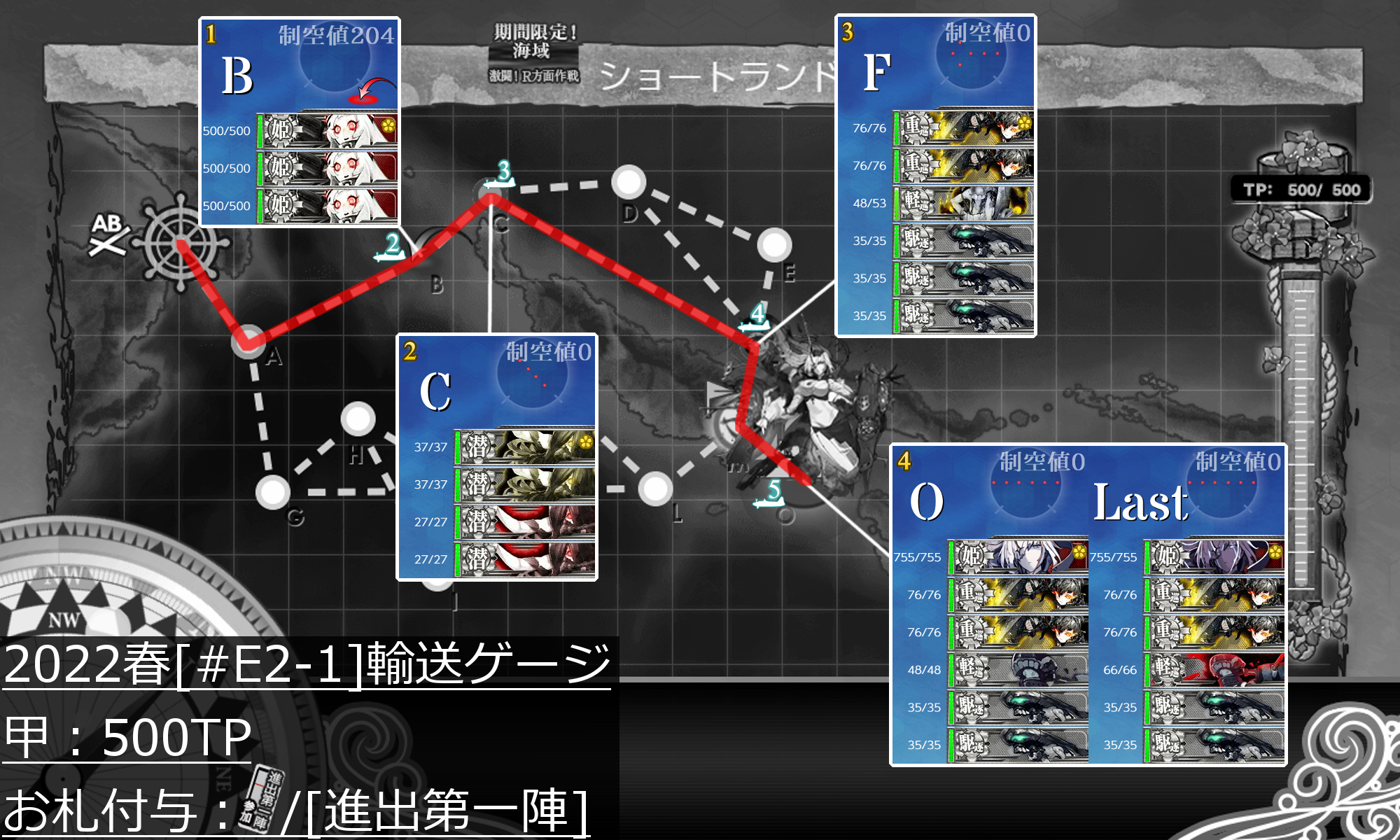 ボス(O),[単縦陣]"防空巡棲姫"は強いですが基地航空隊を送れるのでA勝利は問題ないはず。