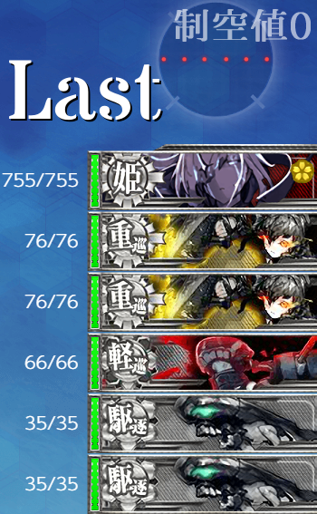 - 編成 最初は輸送重視で編成を組んだんですがそうすると1戦目の空襲戦(B)から事故が多発したので防空艦を編成した形。