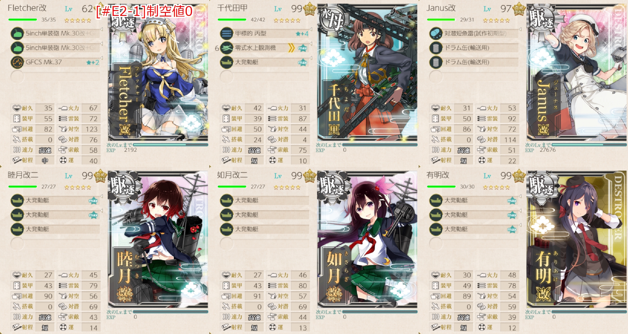 - サブ 「Fletcher」「Janus」。(水母の「千代田」は1人だけですが軽母の「千代田」はいます。)