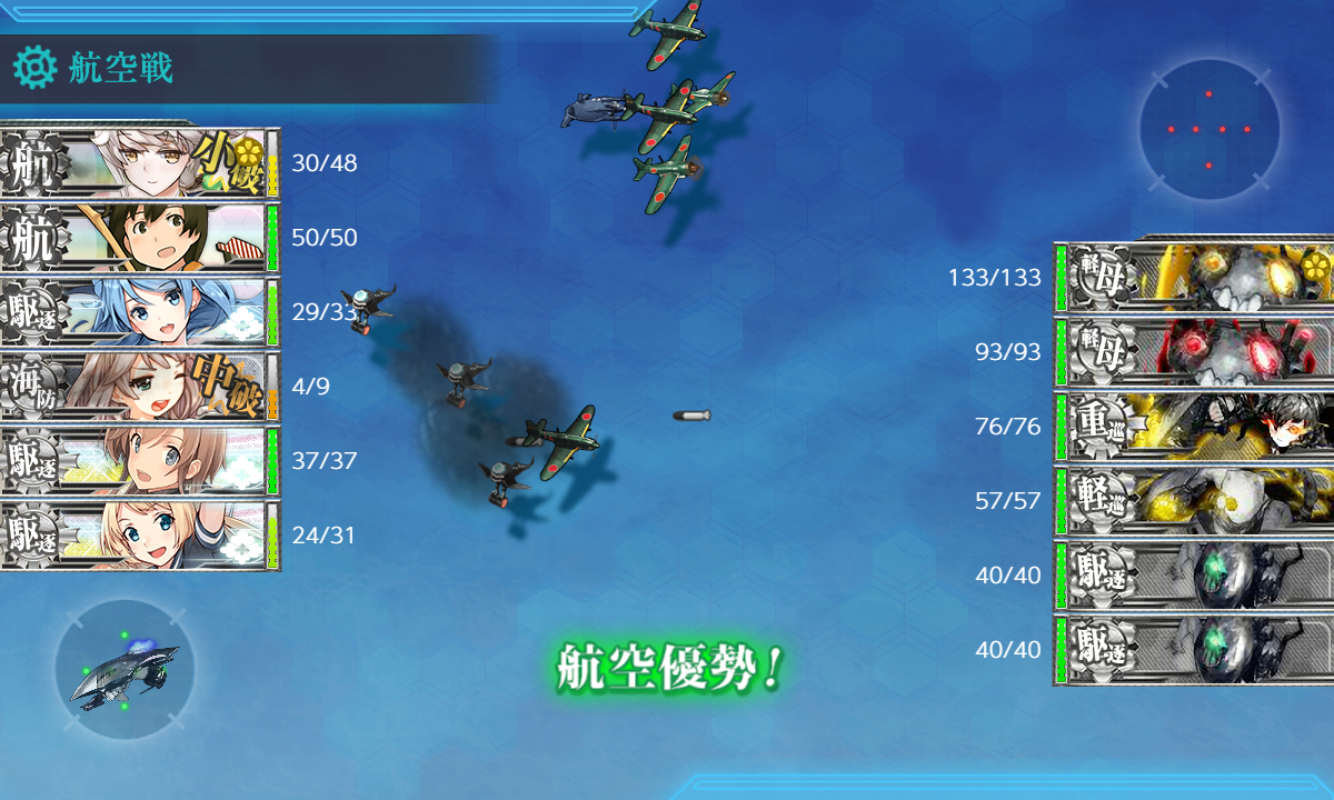 これによって[#E4-2]ボス(W)までの行動半径が【9】から【6】になるので制空値の調整が楽になります。