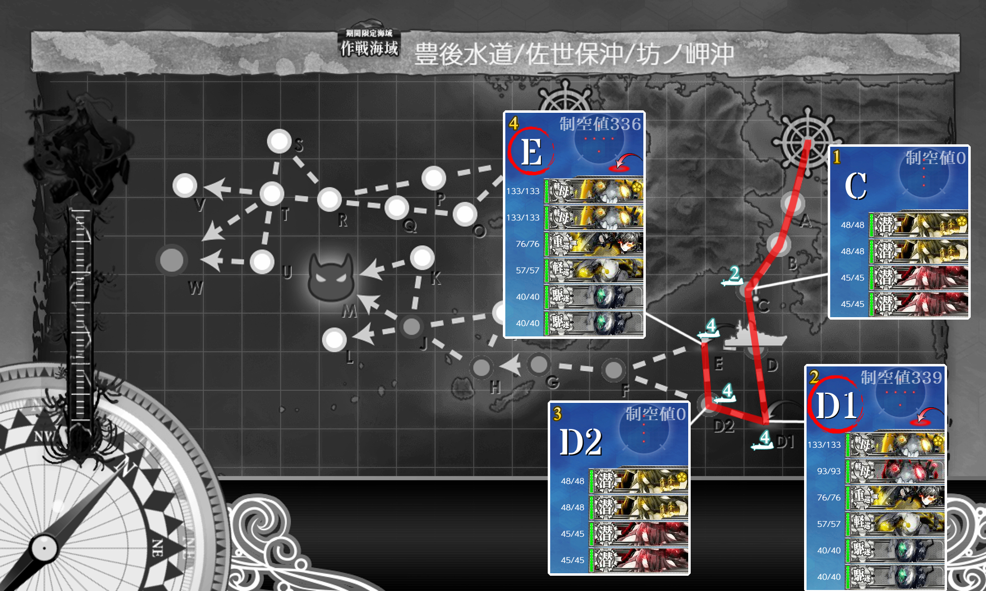 この√でも実質潜水艦戦(D2)が1戦増えるだけなので特に問題という程ではないですが気になる提督は遠征に注意。