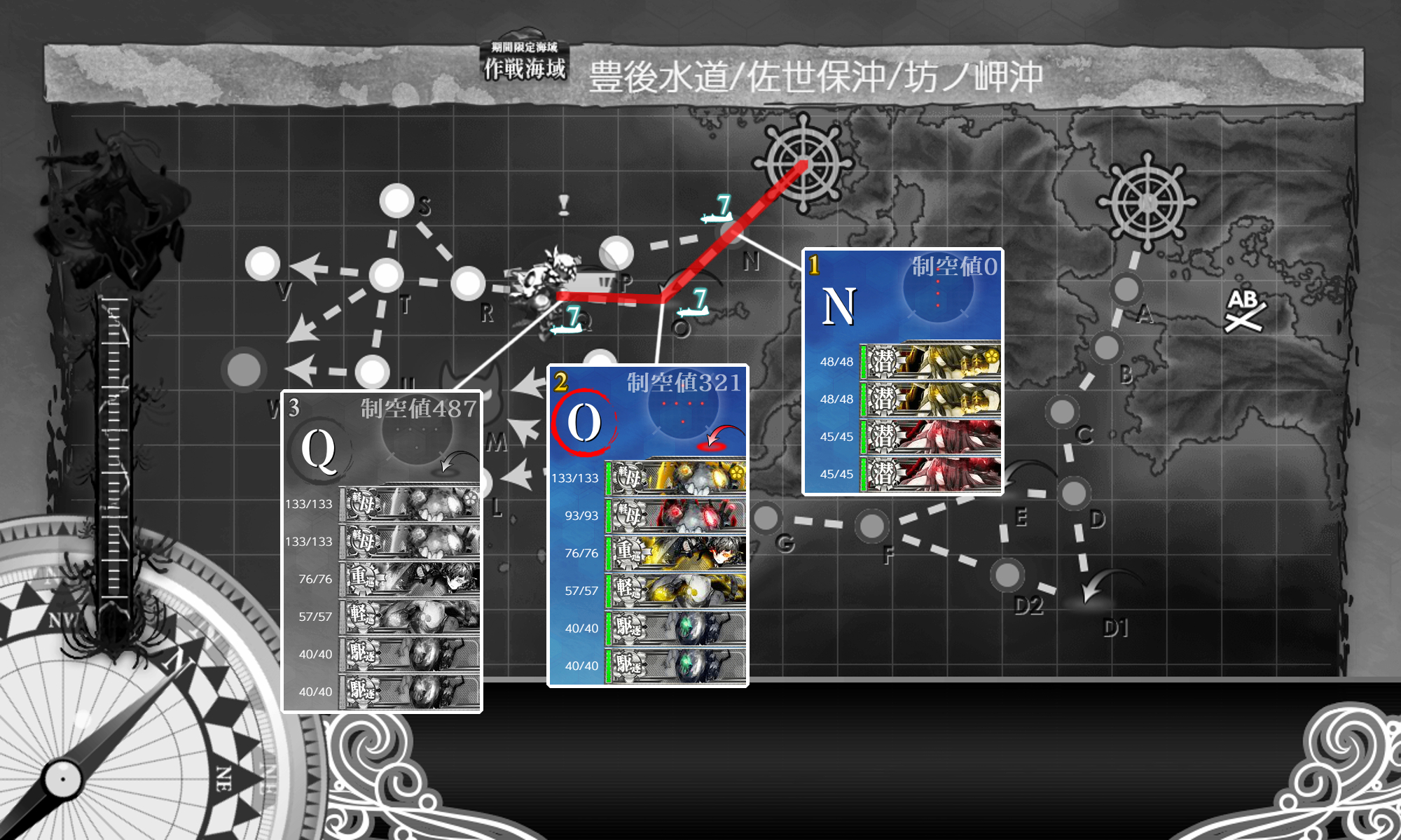 空母2隻と先制対潜艦5隻に切り替えて周回中ですが今だ達成できていませんが頑張ります