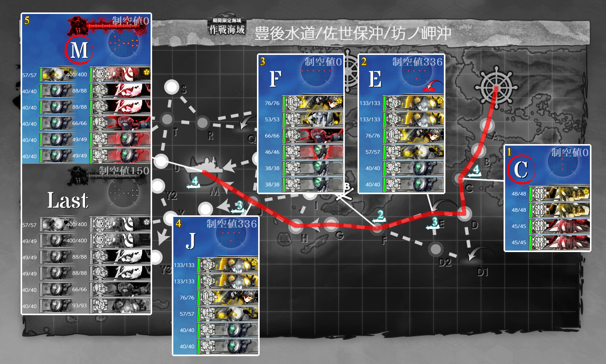 E-5-2までギミックがあるので面倒です。基地空襲は2~3戦しないと出ないのも面倒でした。