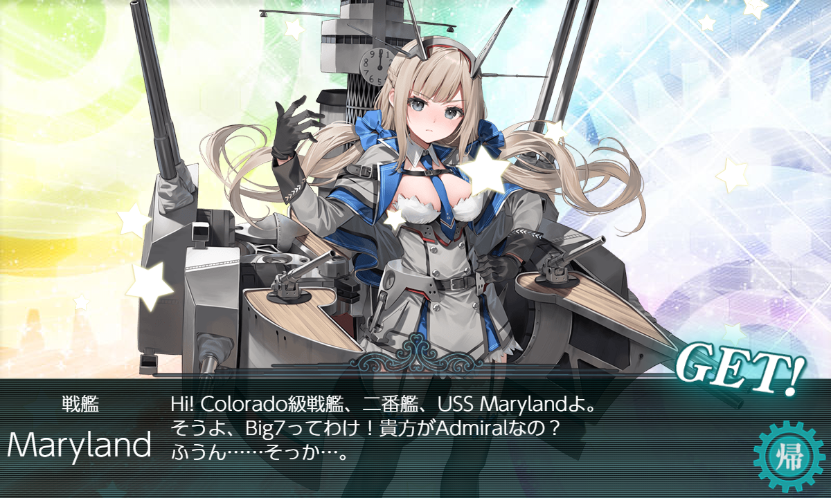 ようやく。ラストは540ダメの妖怪2だけ足りるを雪風が出して終わり・・・あぶない。友軍来たけどこれは過度な期待はできないのか!?私が運が悪い?私は4パターン見ました。榛名旗艦2つ?ホーネット旗艦。山汐丸1つ。どれも正直・・・。メンツ調整でチャンス?夜戦サラがいたのでサラが動ければ一発は大きいのが入るのかなー。