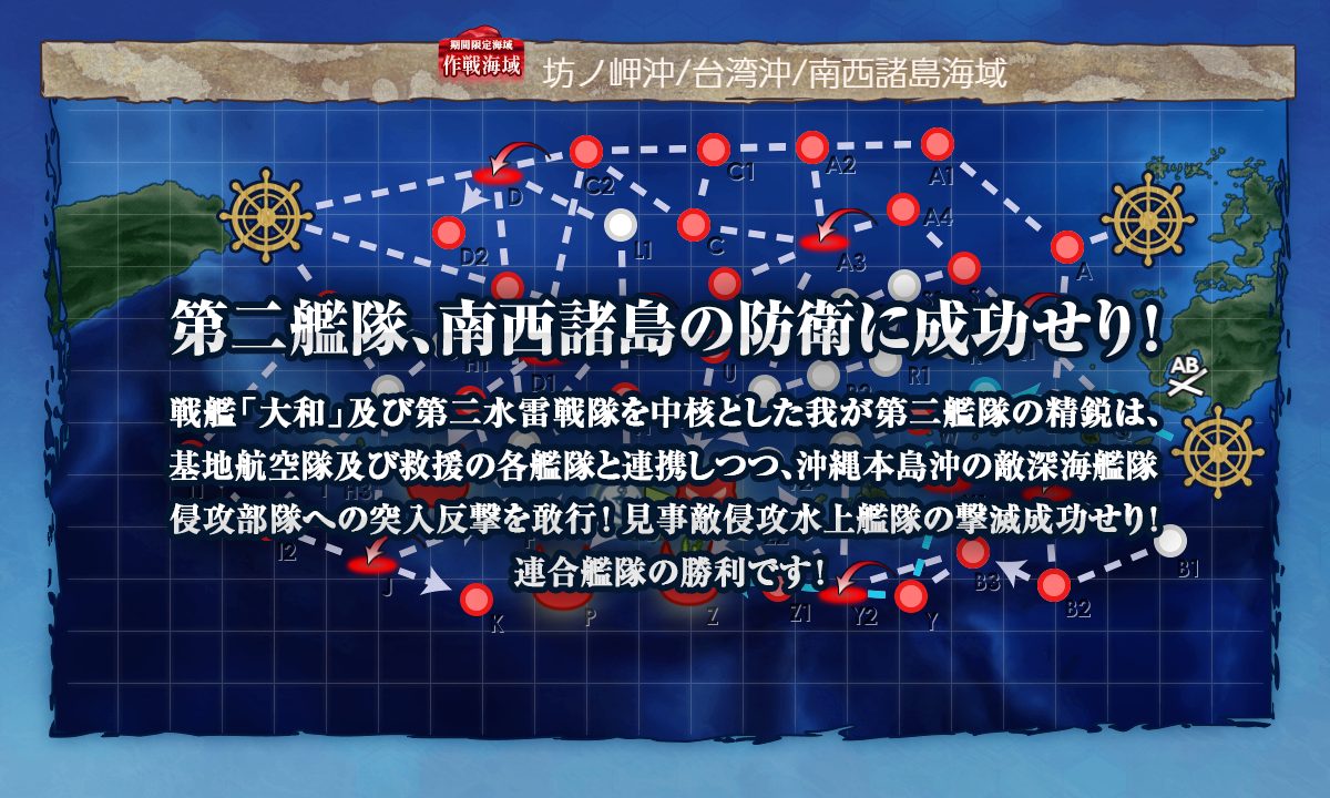 クリアした際も基地と支援により砲撃開始前に第2艦隊が壊滅し、タッチも発動して旗艦に叩き込まれたおかげで