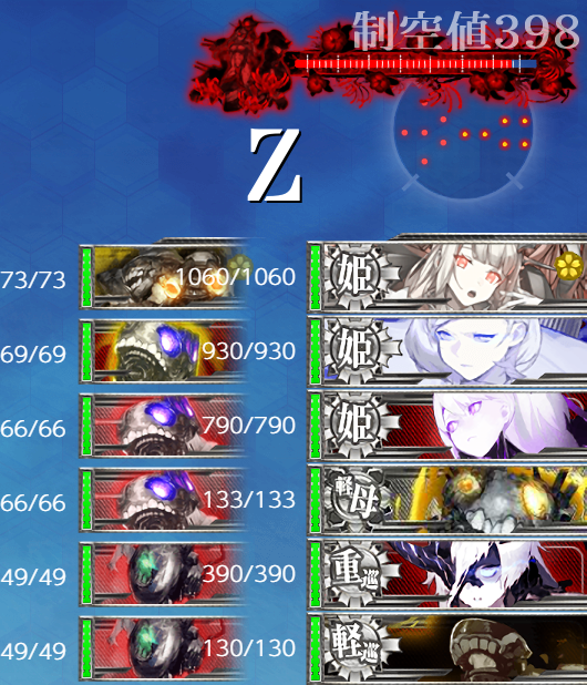 削り段階から姫級4隻(ネ級改含)で上3隻は火力,耐久が高くなかなか落とせない+狙われた艦は高確率で中破↑するので"近代化戦艦棲姫"は1060HPという高耐久なのに削り段階も楽ではない……どころか難しいと言っても良いかも知れません。