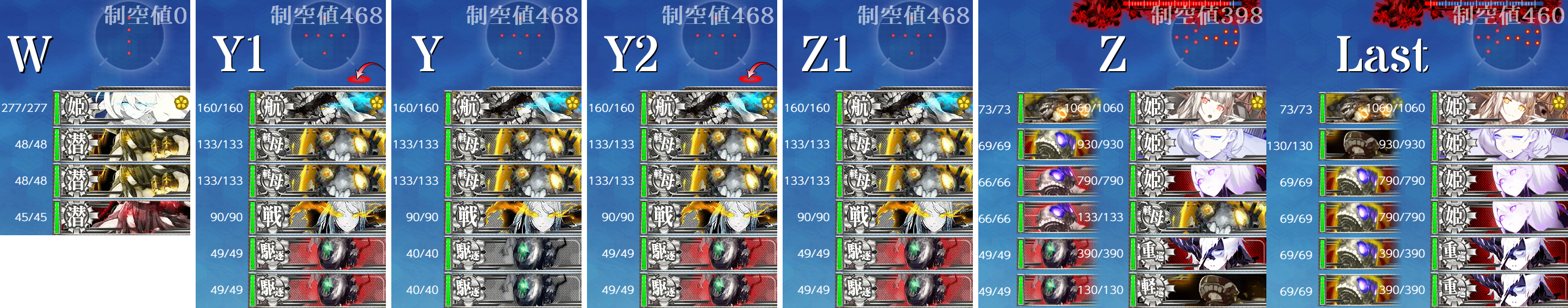 1戦目(W),[第一陣形]"東海"部隊を送ればまず通れますが基地航空隊をここに割くかどうか。