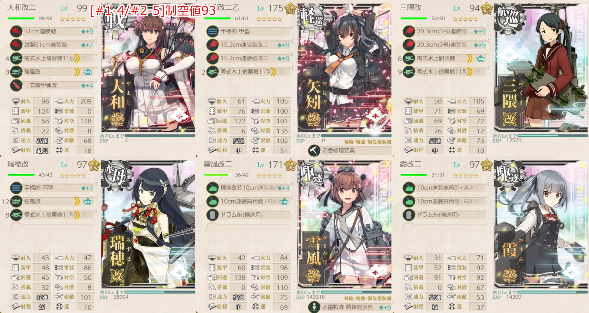 大和は重、改二両方持ち+札ミス予備、今後は前段でもサブあれば切りやすいです