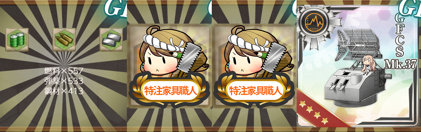 「Johnston」と「Samuel B.Roberts」は噛み合うんですが「Fletcher」は合わなくて"DD-533"はどの艦かと言うとFletcher級の「Hoel(ホーエル)」なんですよねぇ、「Johnston,Samuel B.Roberts」と同様にTaffy-3所属艦ではあるので単純にそこに合わせただけとも取れますがそれならFletcher級の「Heermann(ヒーアマン)[DD-532]」でも良いですし夏イベントで次のFletcher級の実装を考えていてこの任務はそのフラグなのかも?"5inch単装砲 Mk.30改+GFCS Mk.37"が作れるようになりましたしFletcher級を増やすタイミングとしてぴったりな気も。