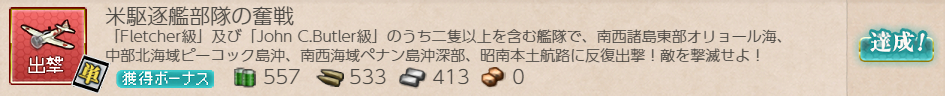 今回本当にまったりですが最後の出撃任務、米駆逐2人とちょっと特殊な指定で海域もそこそこなのでなかなか。