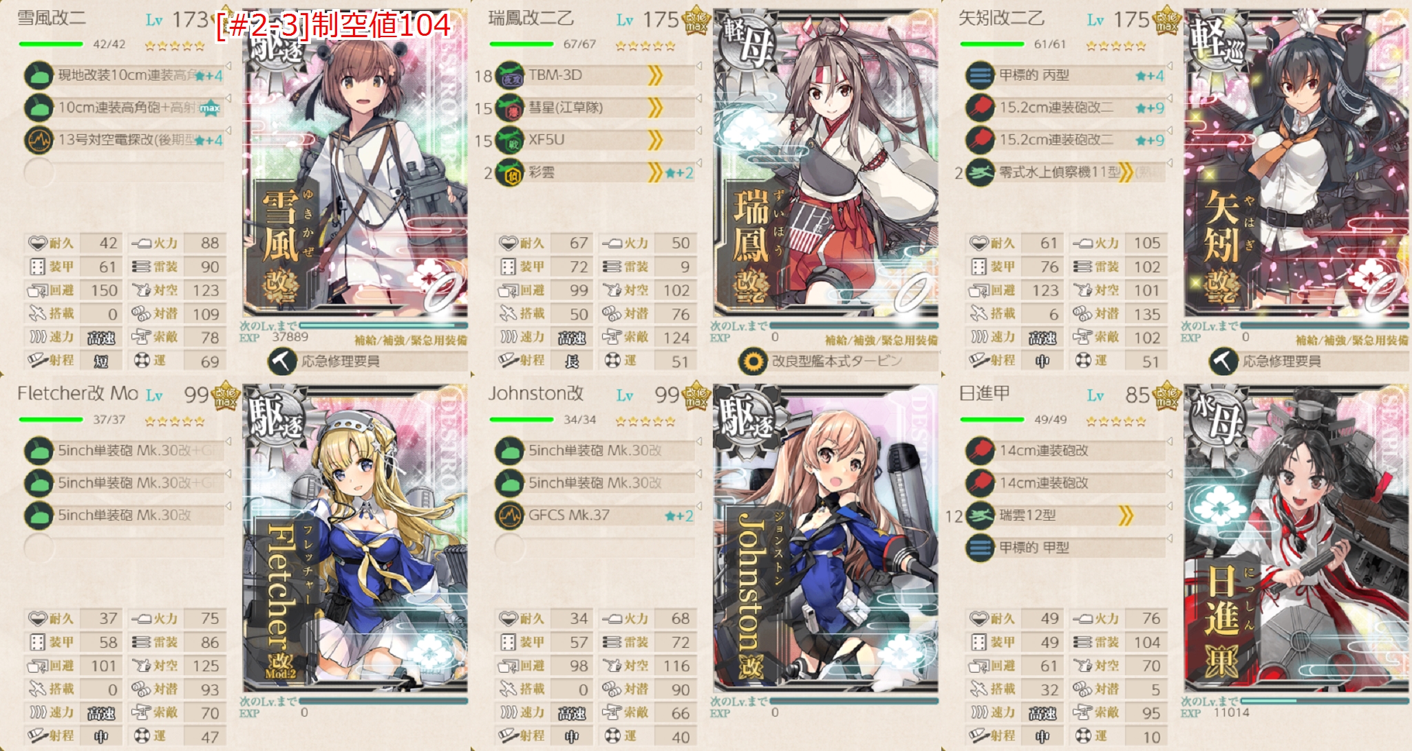 - 制空値 [#2-3]ボスで航空優勢が取れる制空値81↑を目安に。