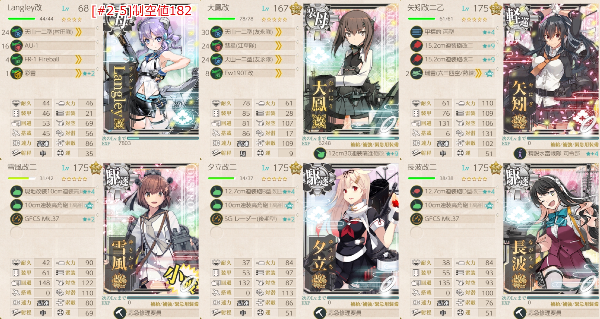 今月の[#2-5]はこんな感じでした。気まぐれで「Langley」編成してみましたが2連続旗艦撃破とはやる気がある。
