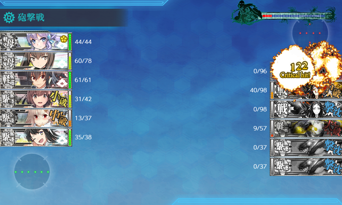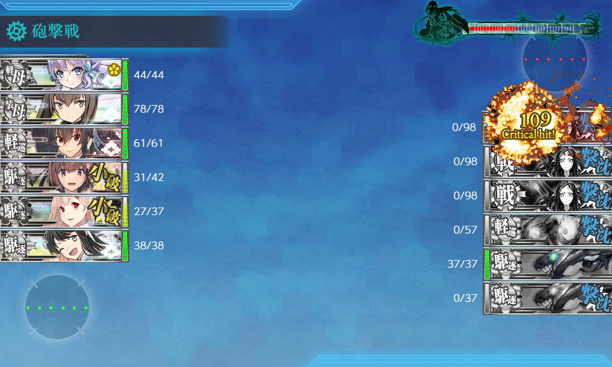 軽空母枠は「瑞鳳」とか「龍鳳」とか改二艦が優秀なので主に耐久面でそこに並ぶ程のスペックではないですがやや火力は高めで1,2スロの搭載が多いという攻撃的ですし何より高速ということで今後活躍の機会はありそう。