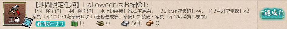 今回の【Halloween】任務群最後は工廠任務。"13号対空電探"をどう調達するかを考えるぐらいかな?