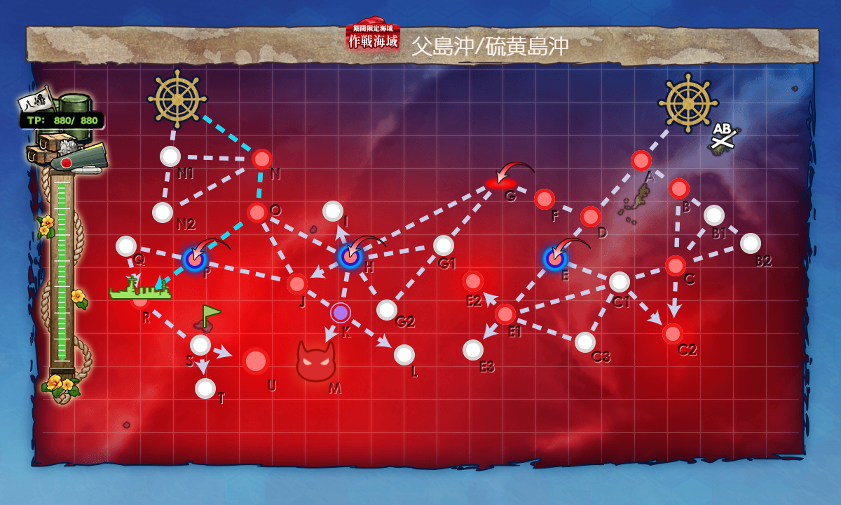海域拡張これでボスマスとそこに続く航路、揚陸地点が出現するので[#E5-2]本攻略開始となります(。・Д・)ゞ