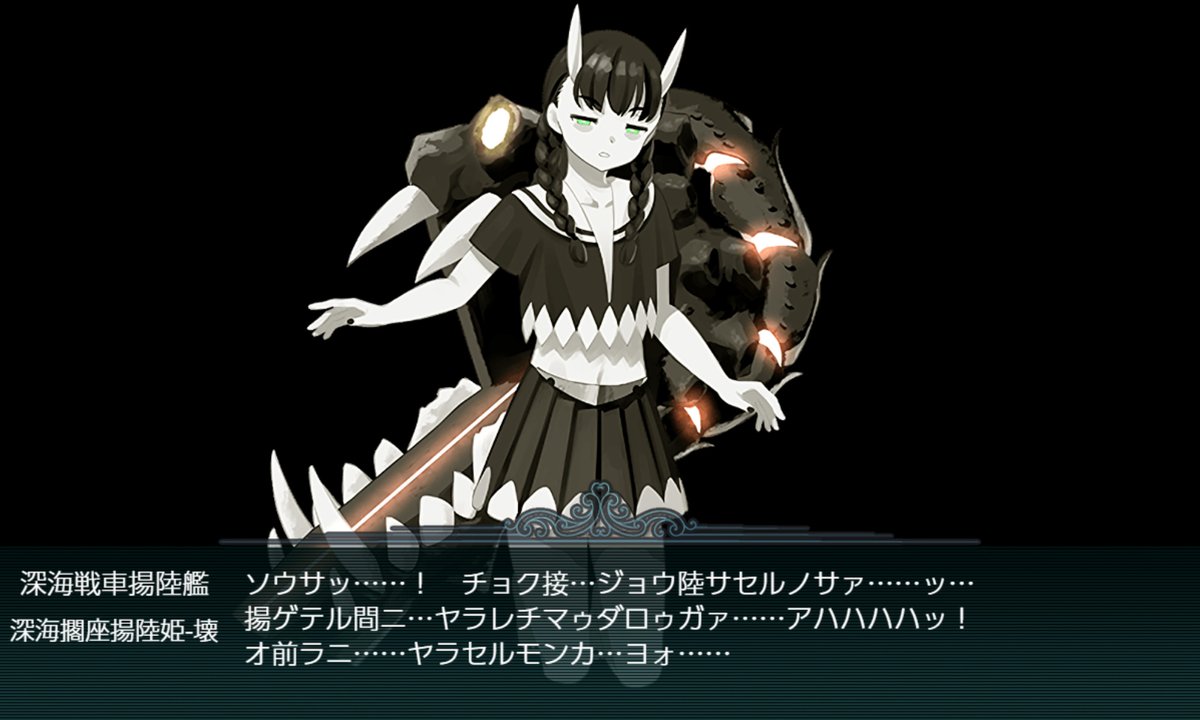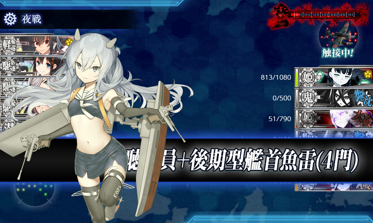 - "深海擱座揚陸姫"を"深海擱座揚陸姫-壊"にする。(≒ゲージを6480HP↑削る。)[(決戦)(支援)連合艦隊]
