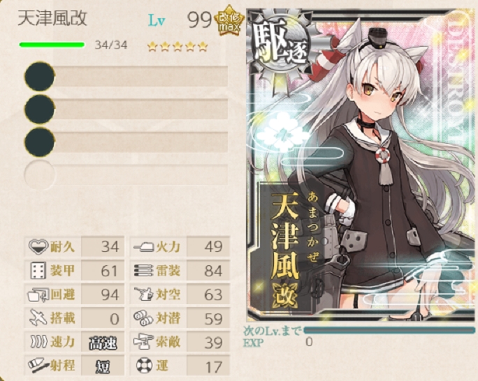 現状の「天津風」のスペックは防御寄りというか耐久性能が高めなのでそっち方向に伸ばしてくる可能性もあるかなー?