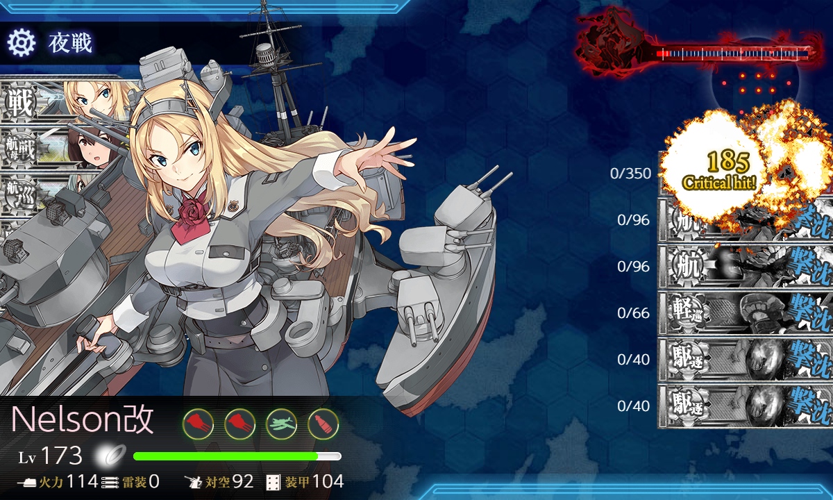 現状「Nelson」は通常海域だと[#6-5]ぐらいにしか出撃機会がないのでなかなか経験値が入りませんが175Lvにはしたいですねー。一時期[#6-2]周回していた頃はそこそこ経験値が稼げていたんですがいつ頃からか安定しなくなっちゃったのでもうちょっと安定させられる新編成とかを考えてみますかねー(・◇・)