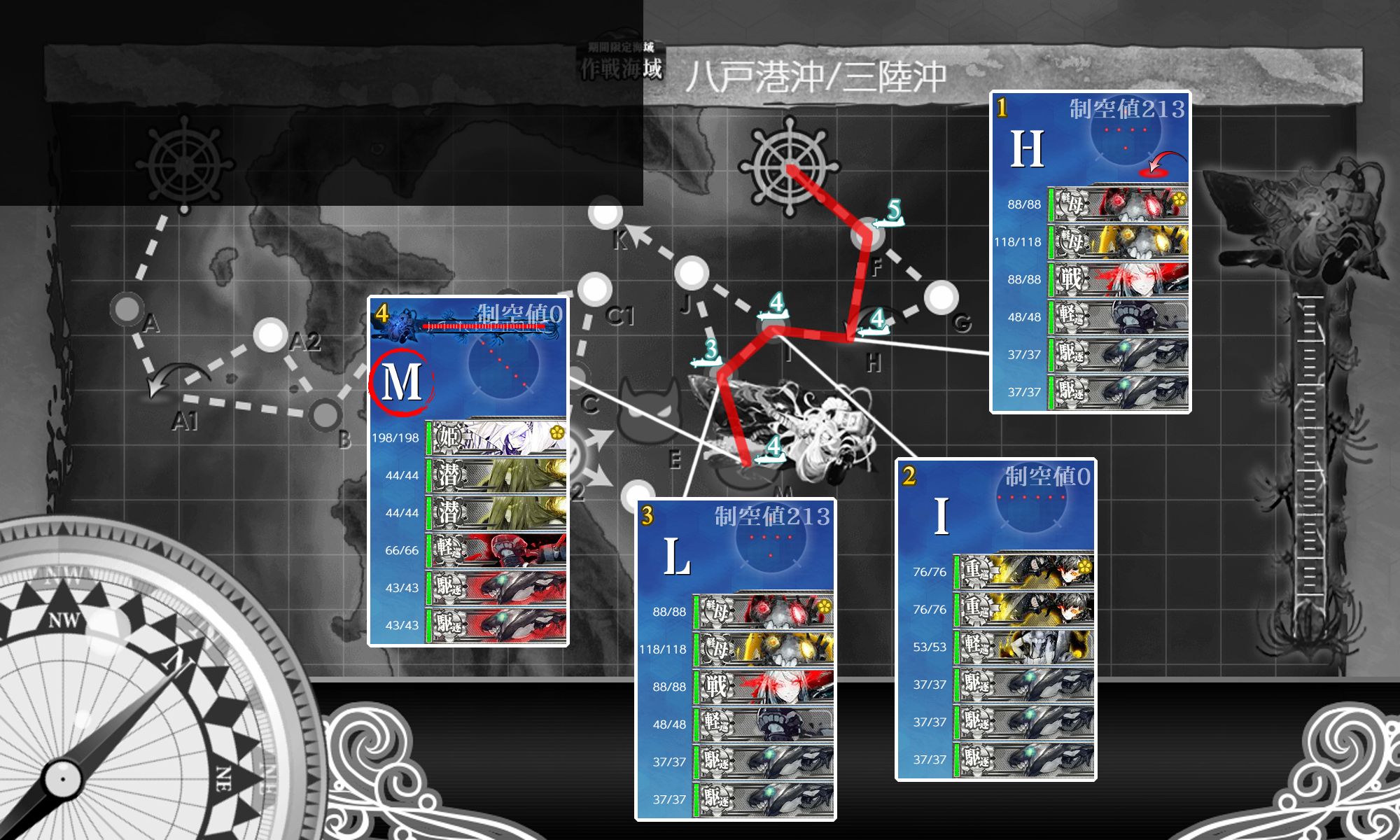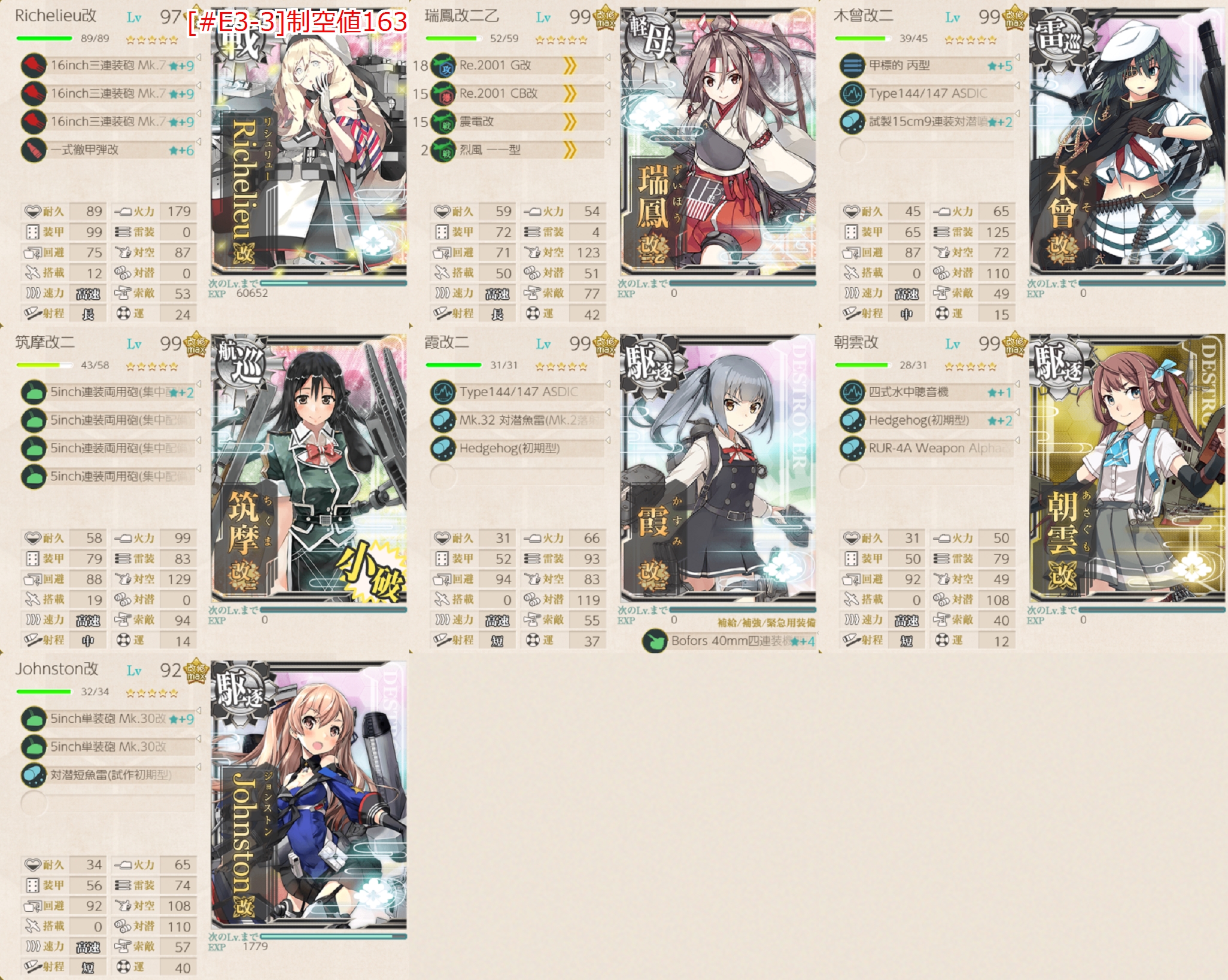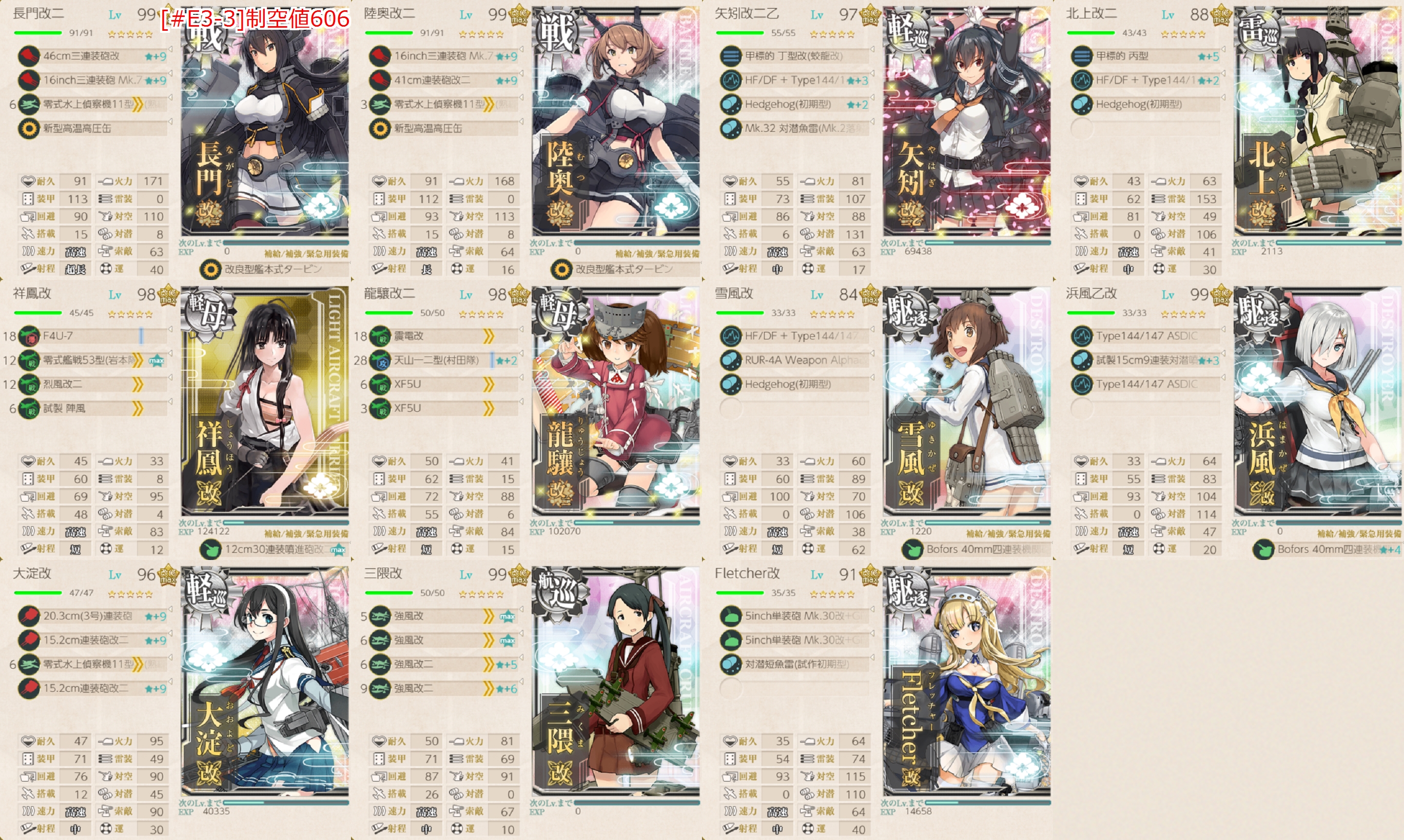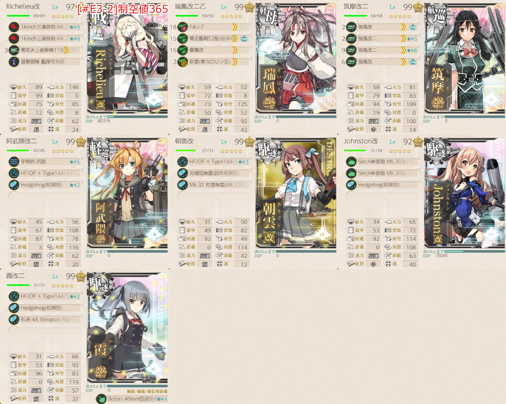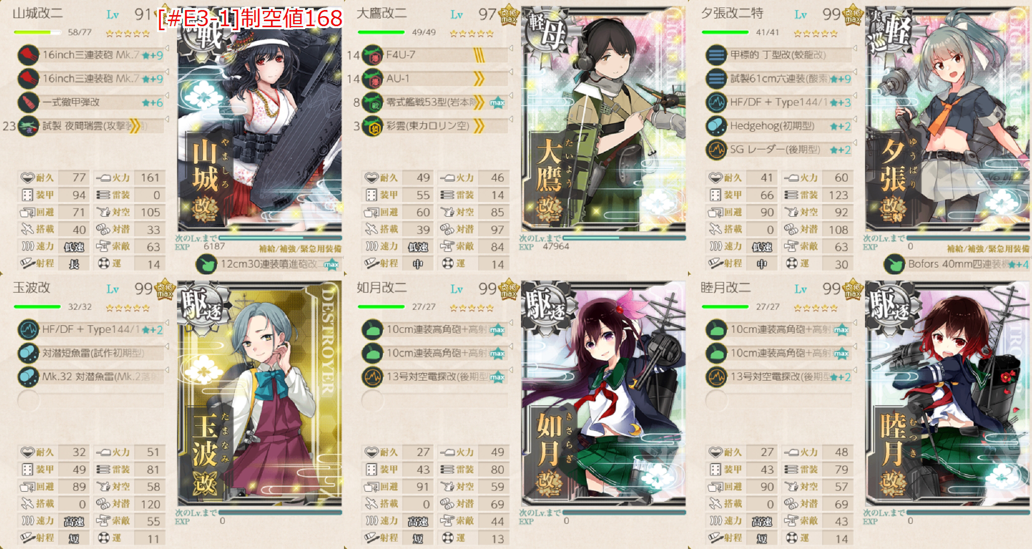 ちなみに全て基地航空隊が1小隊使えるので危ない箇所は送ると安定すると思います。防空は高高爆2つあれば1小隊で問題ないです。