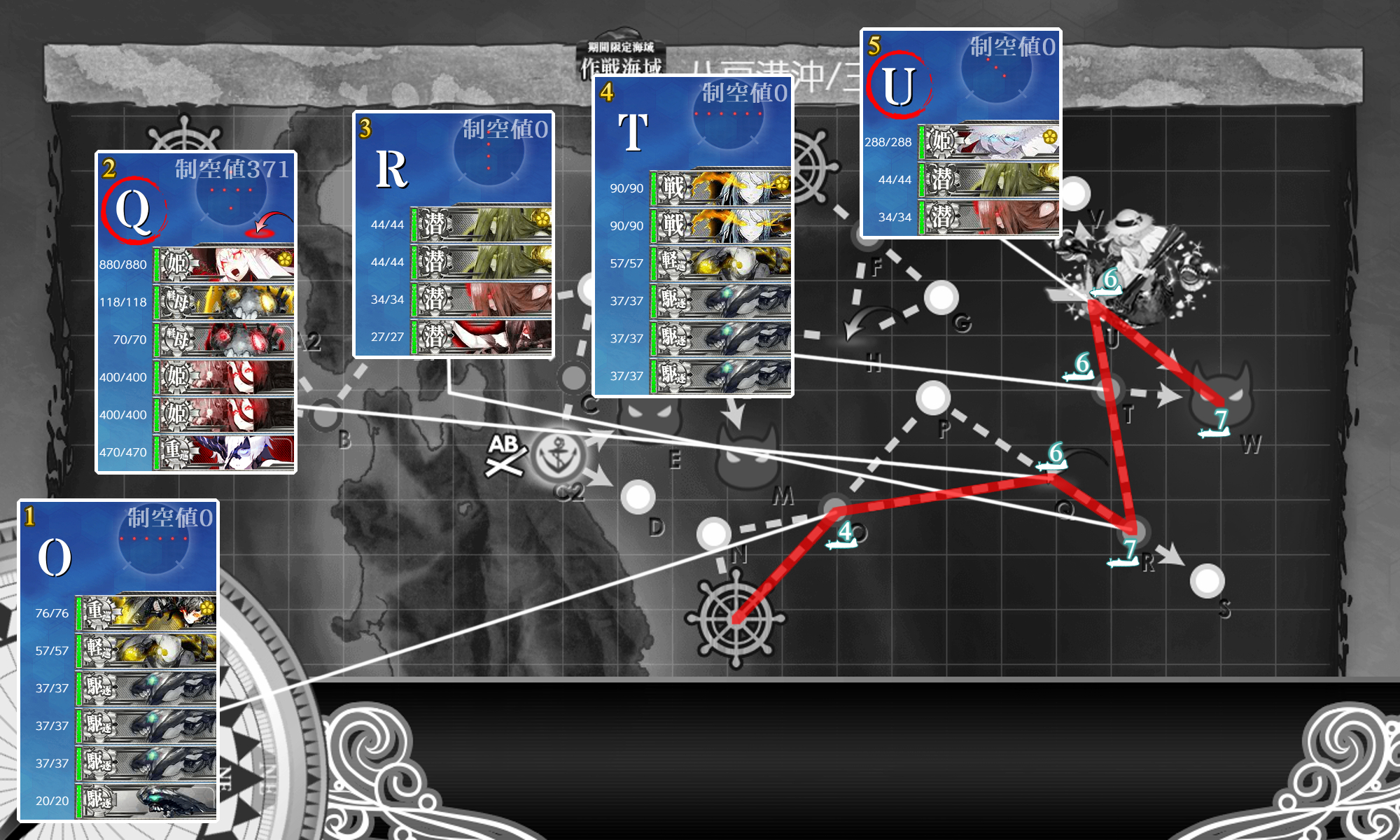RミカサさんのSE音はQマス航空優勢か?基地防空2回優勢のどちらかだと思います。自分も2回目A敗北でピロ~ンと鳴ったので多分防空成功かと。記録取りながら行っていたので2時間ほどかかりましたが1つ1つはそこまで面倒ではありませんでした。最後のUマスは第二艦隊に重巡入っても問題なしです。