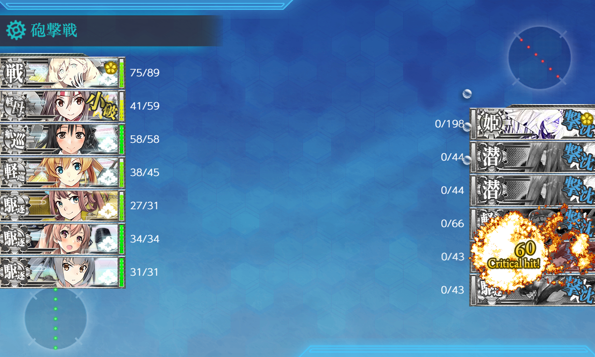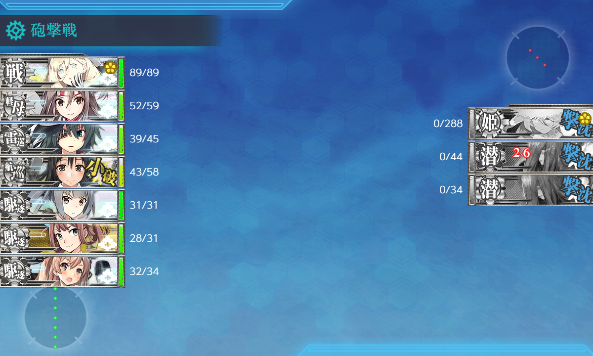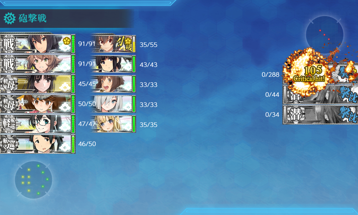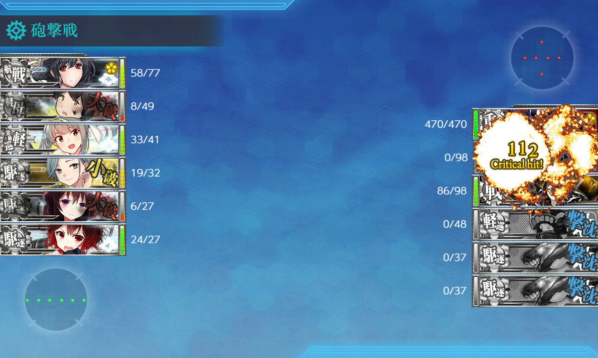 2023年08月14日 22:35 2023夏イベ #E3-3甲 装甲破砕【八戸の盾】 カテゴリ:onlineGAME艦隊これくしょん コメント数:コメント(5) #E3-3甲装甲破砕さてさて[#E3-3]に関しては完全に失念していましたが【装甲破砕】があるということで紹介(。・Д・)ゞ 私自身はそのまま攻略してしまって細かいチェックが出来ないので間違いがあるかも知れませんが悪しからず。 "空母夏姫II"を4回分撃破する。(≒ゲージを3520HP↑削る。)[第二艦隊]Eマス(#E3-1boss)A勝利↑[第一水雷戦隊]KマスS勝利[第五艦隊主力]Mマス(#E3-2boss)S勝利[第五艦隊主力]Qマス航空優勢↑[第二艦隊]UマスA勝利↑[第二艦隊][空襲]航空優勢↑恐らくこんな感じ。[空襲]は優秀な[局戦,陸戦]がある程度揃っていれば勝手に取れるはず。足りない場合は[Eマス(#E3-1boss)A勝利↑]を狙う時に2部隊【防空】にして狙うと吉。[#E3-1]攻略時は基地航空隊が使えませんでしたし。 手順1手順2手順3手順4手順5装甲破砕←Click切替 ゲージ削り まずは『ゲージ削り』という名の本攻略。実際やってみて問題なさそうならそのまま攻略で良いと思います。 EマスA勝利+[空襲]航空優勢↑ 次は『EマスA勝利+[空襲]航空優勢↑』。[#E3-1]と同じことをやるだけ。輸送装備が要らないので攻略時より楽。 編成(通常艦隊)/お札:[第一水雷戦隊]▼Click 編成面子は[#E3-1]と一緒で輸送装備を対潜とか対艦装備にしただけ。 制空値空襲戦(A1,B1)で航空拮抗が取れる制空値118↑稼げば充分。 サブ「山城」「夕張」 基地航空隊 第一航空隊:【B2,Eマス】に分散。必要行動半径は【3,2】[制空権確保×2] 第二航空隊:【防空】[航空優勢] 不要だと思いますが一応[ボス(E)]と[B2マス]に。 [空襲]は制空値369↑で航空優勢が取れるので基本1部隊で足りるはず。私の第二航空隊で制空値400(×1.2)。 [空襲]は重爆仕様っぽいので[ロケット局戦]を忘れずに。『[ロケット局戦]→[0:0.5倍/1:0.8倍/2:1.1倍/3:1.2倍]』 KマスS勝利(+[空襲]航空優勢↑) 次は『KマスS勝利(+[空襲]航空優勢↑)』。低索敵値だと逸れる本来は外れマスなので到達出来るかが厄介かも? あとは『[空襲]航空優勢↑』は2回必要?説もあるので2部隊【防空】にした場合こっちを先にした方が良いのでまずは。 編成(遊撃部隊)/お札:[第五艦隊主力]▼Click 編成[#E3-2]攻略時から「阿武隈」→「木曾」に。どうやら"軽巡"が駄目みたい。 "軽巡"を編成する場合は"海防"とか低速艦を混ぜると大丈夫みたい?お札関連で"軽巡"を編成したい時はそっちかな? あとは索敵値が条件ということで索敵値付きの装備に注意。[彩雲]も載せられませんがT字不利でもS勝利が取れました。 制空値攻略時は航空優勢(制空値320↑)まで稼ぎましたが今回は空襲戦(H)で航空拮抗が取れる制空値143↑を目安に。 サブ「Richelieu」「瑞鳳」「木曾」「筑摩」「霞」「Johnston」 基地航空隊 第一航空隊:【退避】。 第二航空隊:【防空】[航空優勢] 第一航空隊は不要なので【退避】。[Iマス]に送っても良いですが(・◇・) MマスS勝利 次は『MマスS勝利』。[#E3-2]攻略と同じことをやるだけ。 編成(遊撃部隊)/お札:[第五艦隊主力]▼Click 編成[#E3-2]攻略と同じ。 制空値空襲戦とかで航空優勢が取れる制空値320↑まで稼ぎましたが恐らく航空拮抗(制空値143↑)でも充分。 サブ「Richelieu」「瑞鳳」「筑摩」「阿武隈」「Johnston」「霞」 基地航空隊 第一航空隊:【I,Lマス】に分散。必要行動半径は【4,3】[制空権確保,航空劣勢] 第一航空隊:【防空】[航空優勢] Qマス航空優勢↑+UマスA勝利↑ 最後は『Qマス航空優勢↑+UマスA勝利↑』。[#E3-3]攻略編成をちょっとアレンジするだけ。 編成(遊撃部隊)/お札:[第五艦隊主力]▼Click 編成[#E3-3]攻略編成とほぼ一緒ですが[Qマス]で航空優勢が取れるように制空値を盛ったのと[Uマス]への到達条件が"駆逐"3↓なので"駆逐"を1人抜いただけ。適当に"重巡"とか追加してもok。 そのまま[ボス(W)]にも到達出来るので基地航空隊を[ボス(W)]に送って【装甲破砕】を確認しつつゲージ破壊を狙うのもあり。その場合「長門,陸奥」は攻略記事のように特殊砲撃の倍率重視の装備にしましょう。 その他にも第二艦隊も何人か夜戦火力要員にしておけば割とそのまま撃破出来そうな気がします(・◇・) 制空値[Qマス]で航空優勢を取るには制空値557↑必要なのでそこを目安に。 サブ「長門」「陸奥」「大淀」「矢矧」「北上」「Fletcher」「雪風」 基地航空隊 第一航空隊:【退避】。 第一航空隊:【防空】[航空優勢] 第一航空隊は不要なので【退避】。[Tマス]に送ったりそのまま攻略を目指すなら[ボス(W)]に送ってもok。 装甲破砕"空母夏姫II"に【装甲破砕】グラフィックが作られるとは(・◇・)表情が変わっているので分かりやすいかな? 基本的には【装甲破砕】は不要だと思いますけど特に難しい条件もないですし「長門,陸奥」を編成しないとか撃破率を少しでも上げたいとかあと一歩が足らないということが続いたらやってみるのが良いんじゃないでしょうか。 タグ :#艦これ#艦これイベント#2023夏イベント#装甲破砕#前段作戦 艦隊これくしょん(艦これ)ランキングに参加