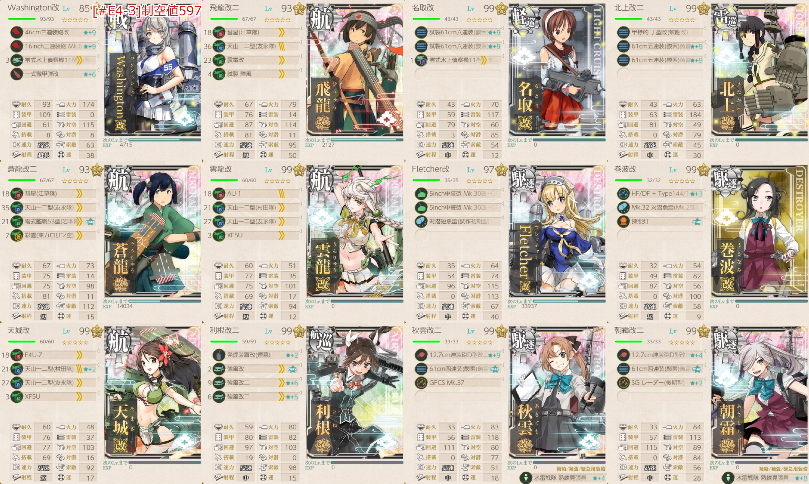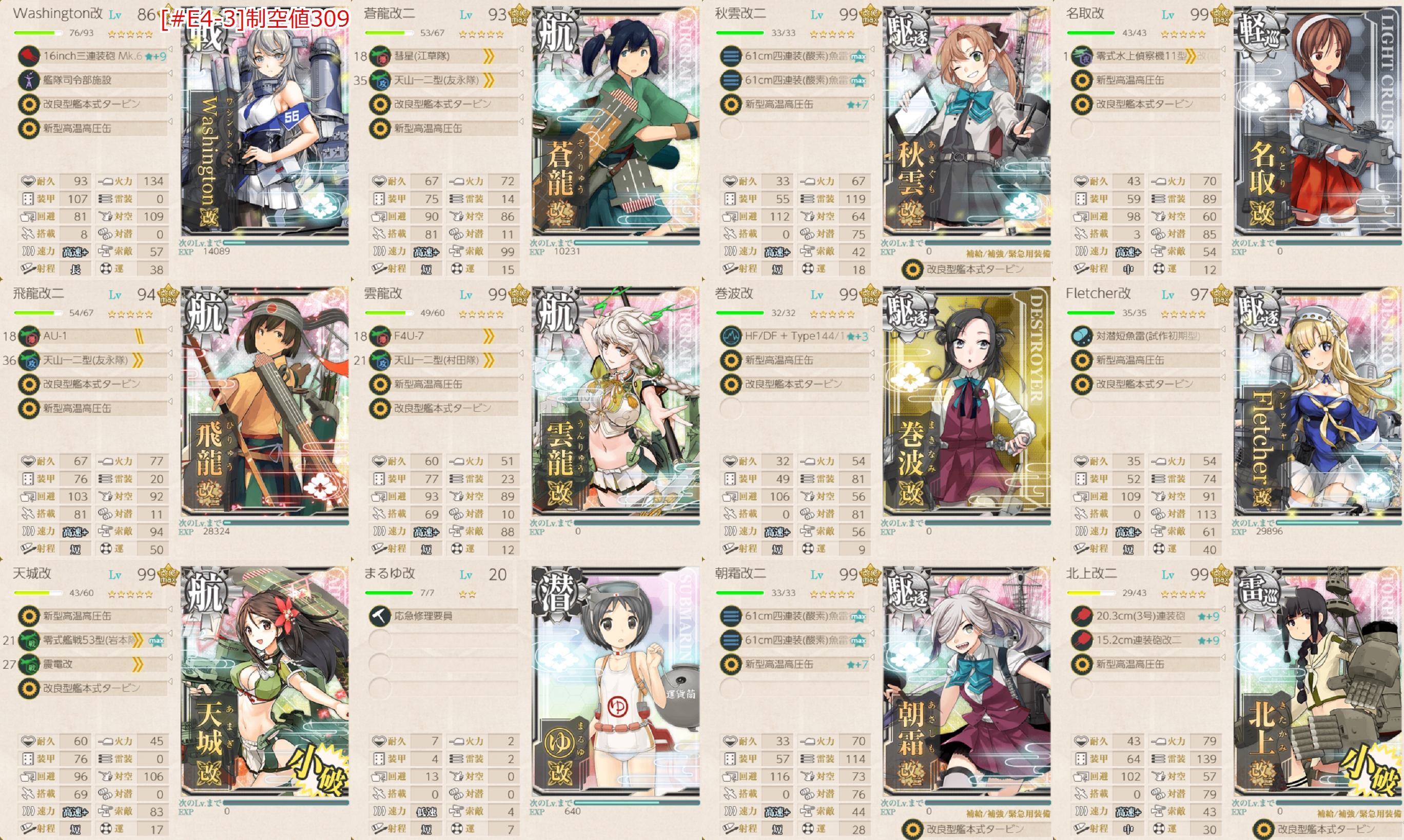 本来やらない予定でしたがE-4-2で大和改二(サブ)を使ったことや、前哨戦でも2択になることがあり自分の実力では3択スナイプでイライラが見えたので装甲破砕を決意しました。大和の一斉射撃を使わないとなると意外と砲撃も乱数上下するので破砕したほうがいいと思います。