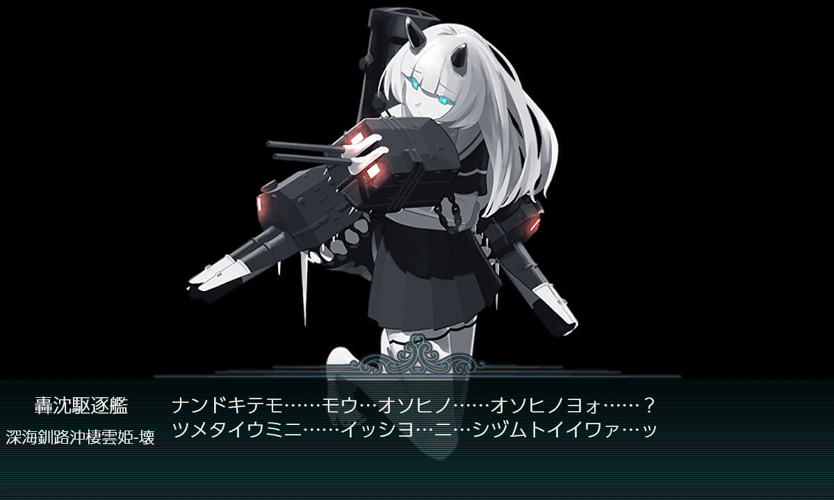 - "深海釧路沖棲雲姫"を"深海釧路沖棲雲姫-壊"にする。(≒ゲージを3364HP↑削る。)[第五艦隊主力]