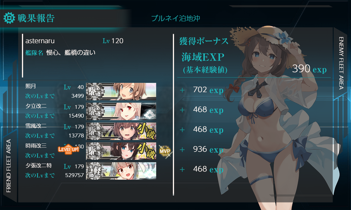 [#3-2]周回の経験値が大きいんだと思いますけど周回数が結構違うはずなのでMVP率とか旗艦ボーナスですかねー。