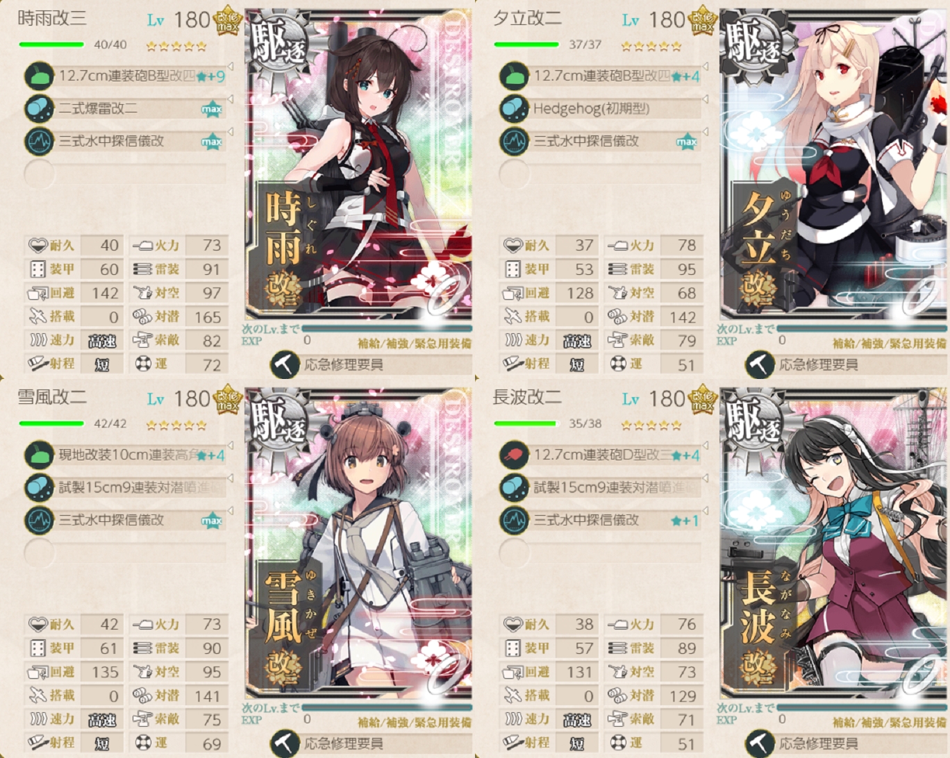 それと「時雨」のカンスト自体は少し前ということで現時点では4人180Lvに到達してます。