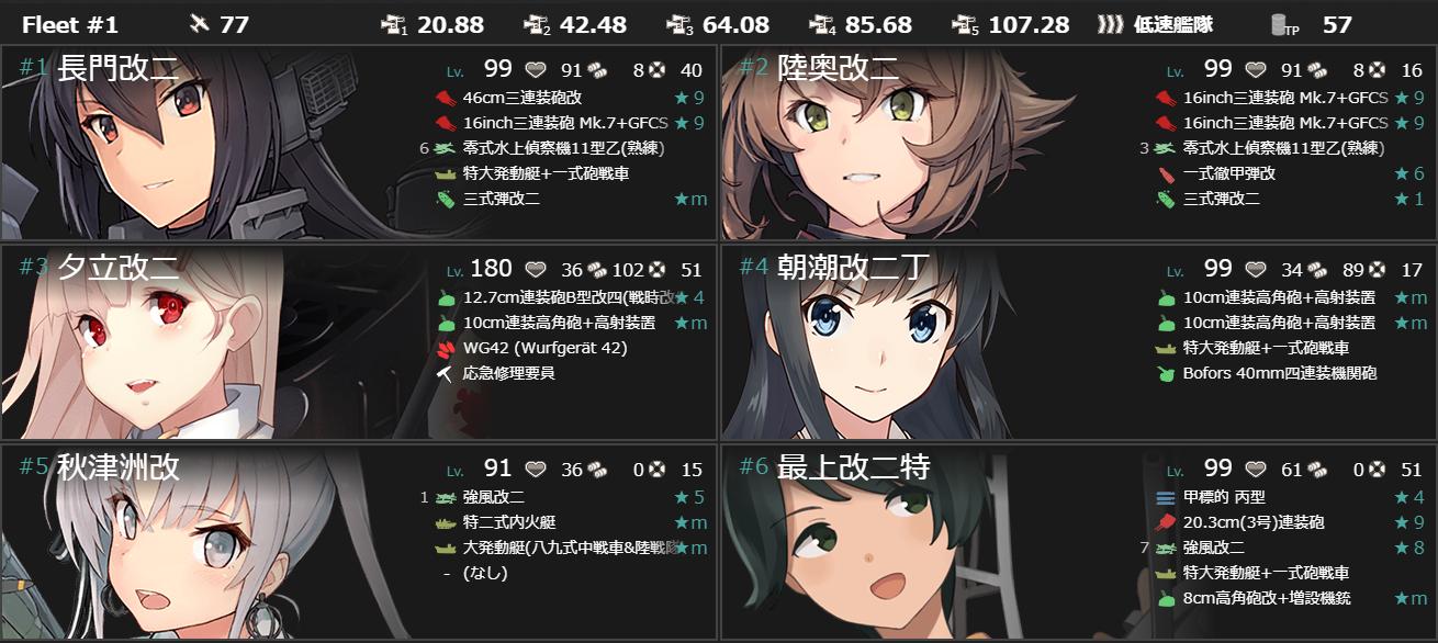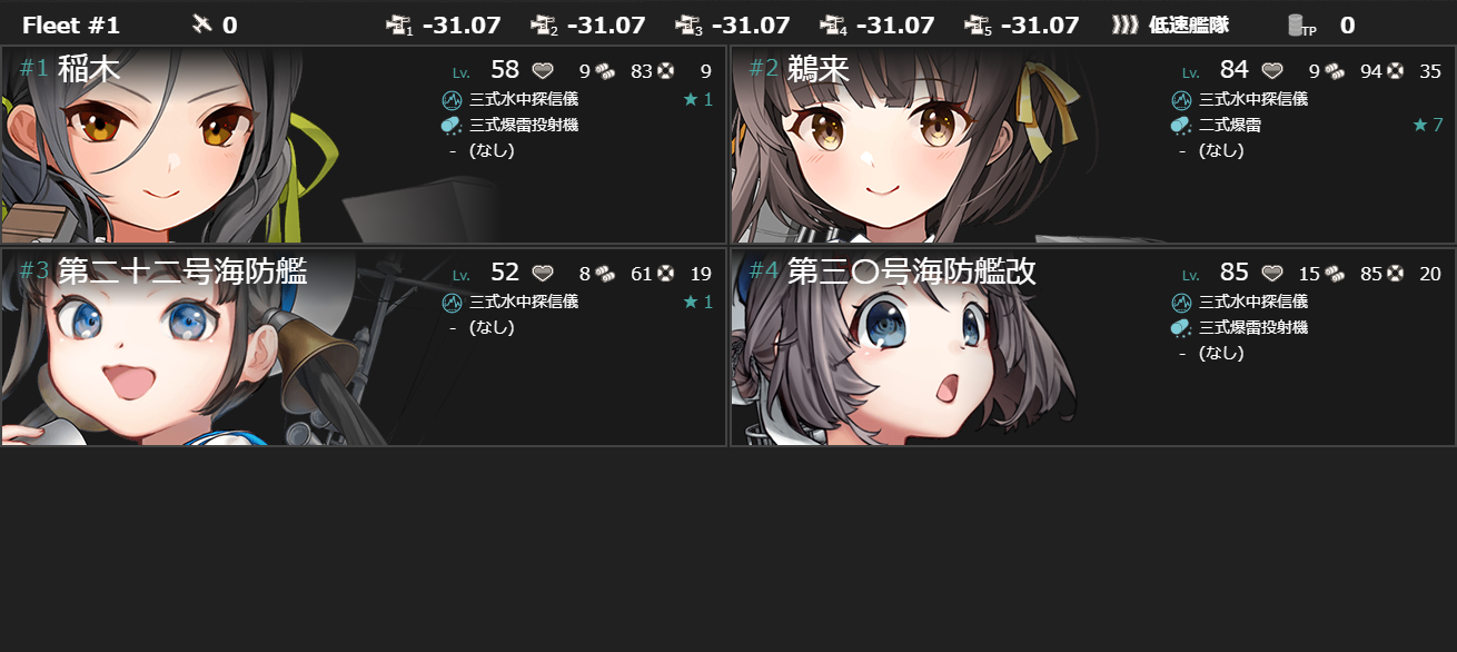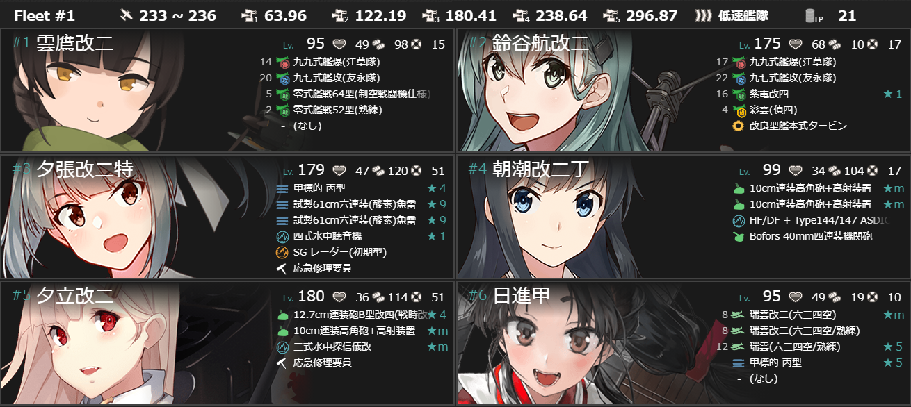 - [「鵜来/稲木/朝潮/夕立/野分/浜波/早波/阿武隈」2]+[自由枠4]で