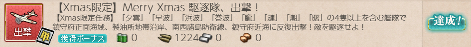 【Xmas限定任務】ということで【Xmas】modeの艦娘が指定されてますが鎮守府海域(1-*)指定なのでどうとでも。
