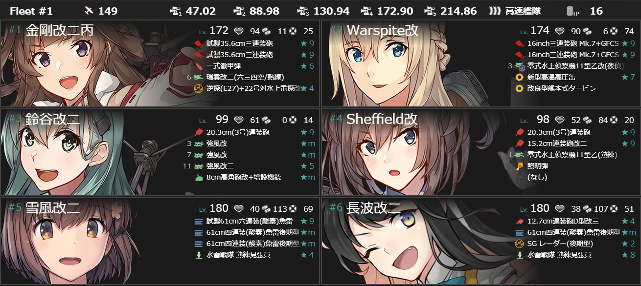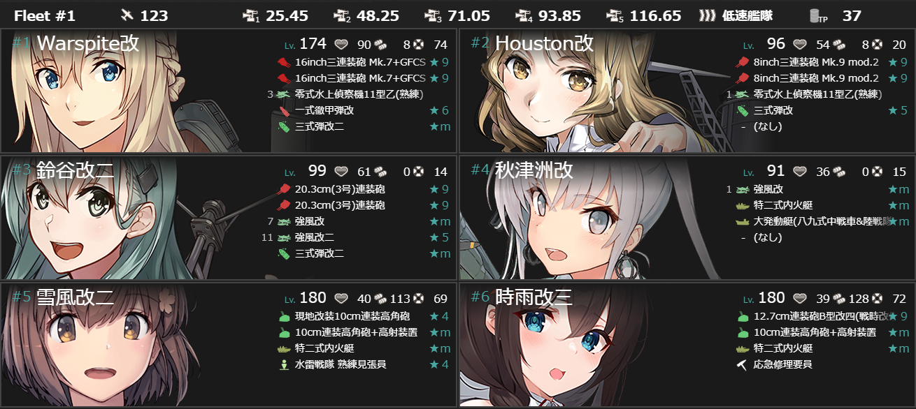 - [「Warspite」「Sheffield」「Houston」「鈴谷」「熊野」「衣笠」3]+[自由枠3]で