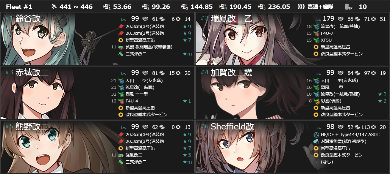 どちらも指輪艦かつ「金剛」に[逆探(E27)+22号対水上電探改四(後期調整型)]を載せたのもあって発動率100%でした。