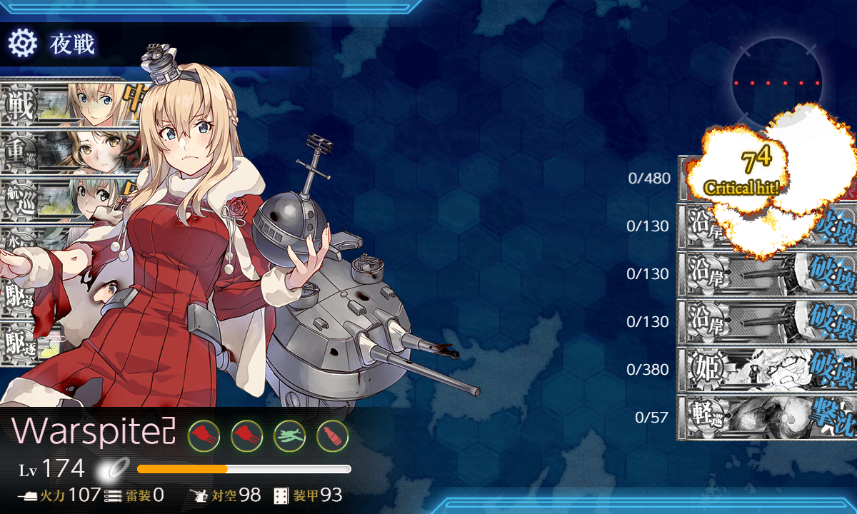 【Xmas】mode「Warspite」の僚艦夜戦突撃が見たくて[#5-3]では「金剛」を編成しましたけど良いですね(・v・ )