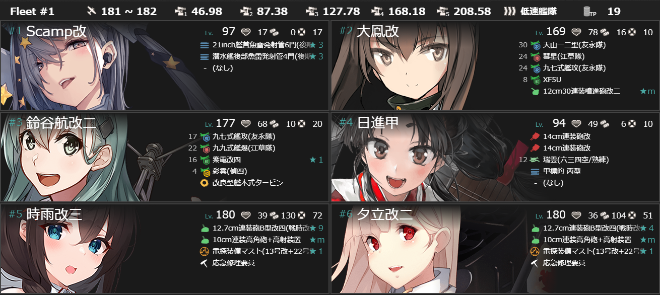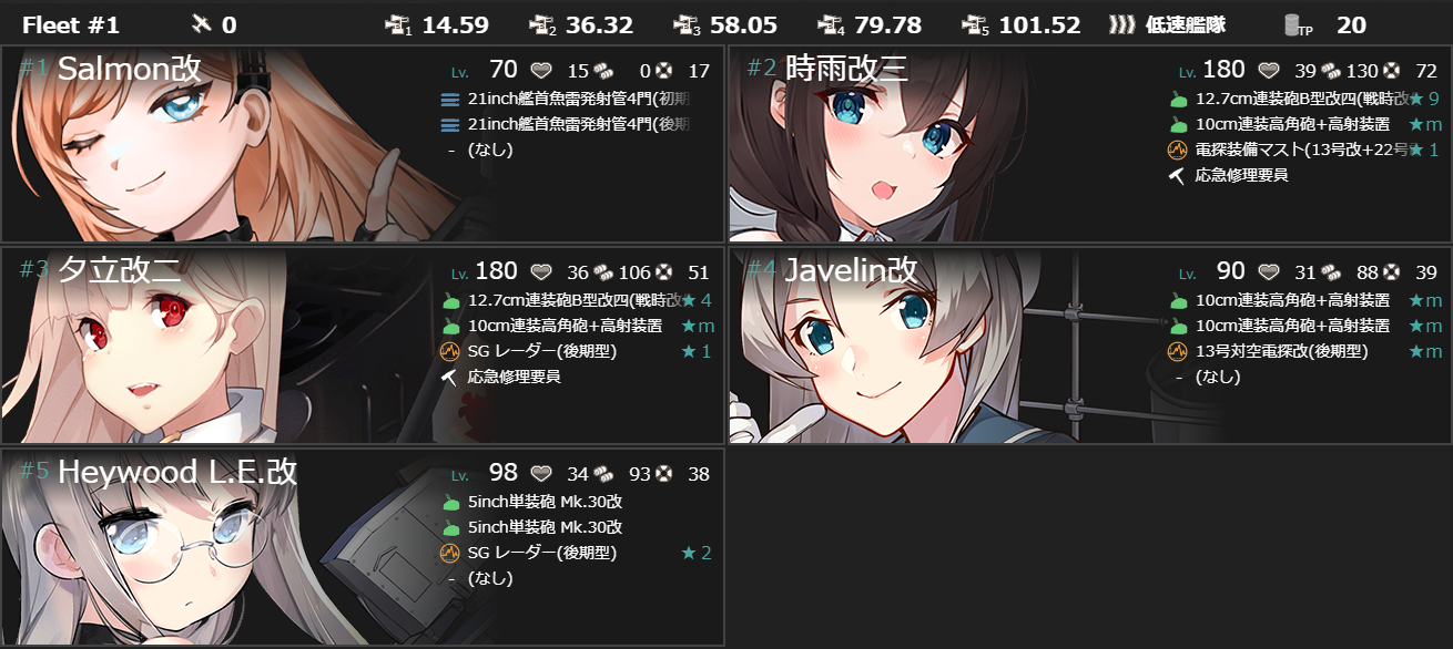 - [旗艦「Salmon/Scamp」]+[自由枠5]で
