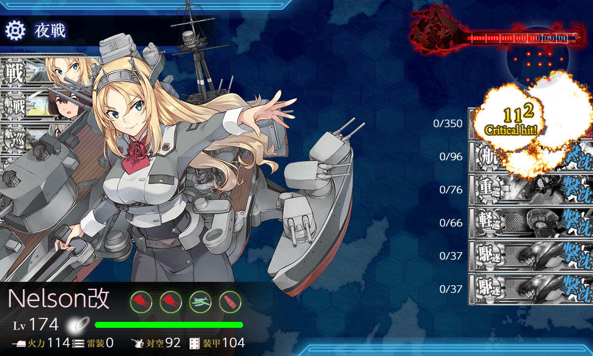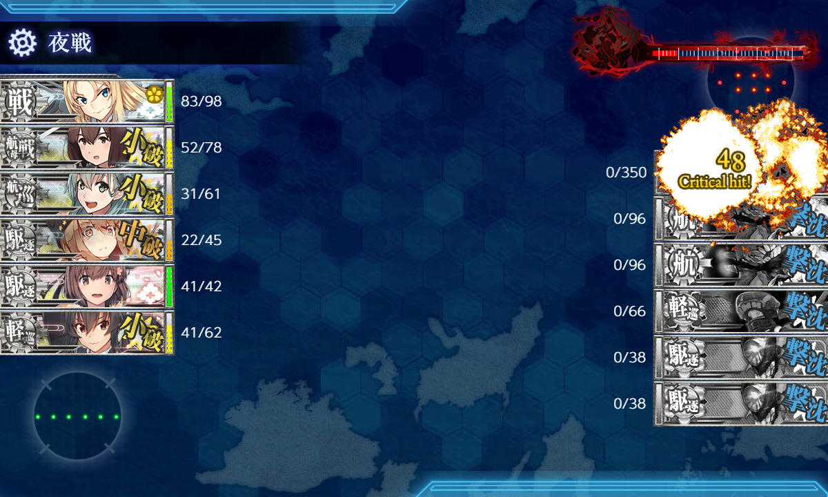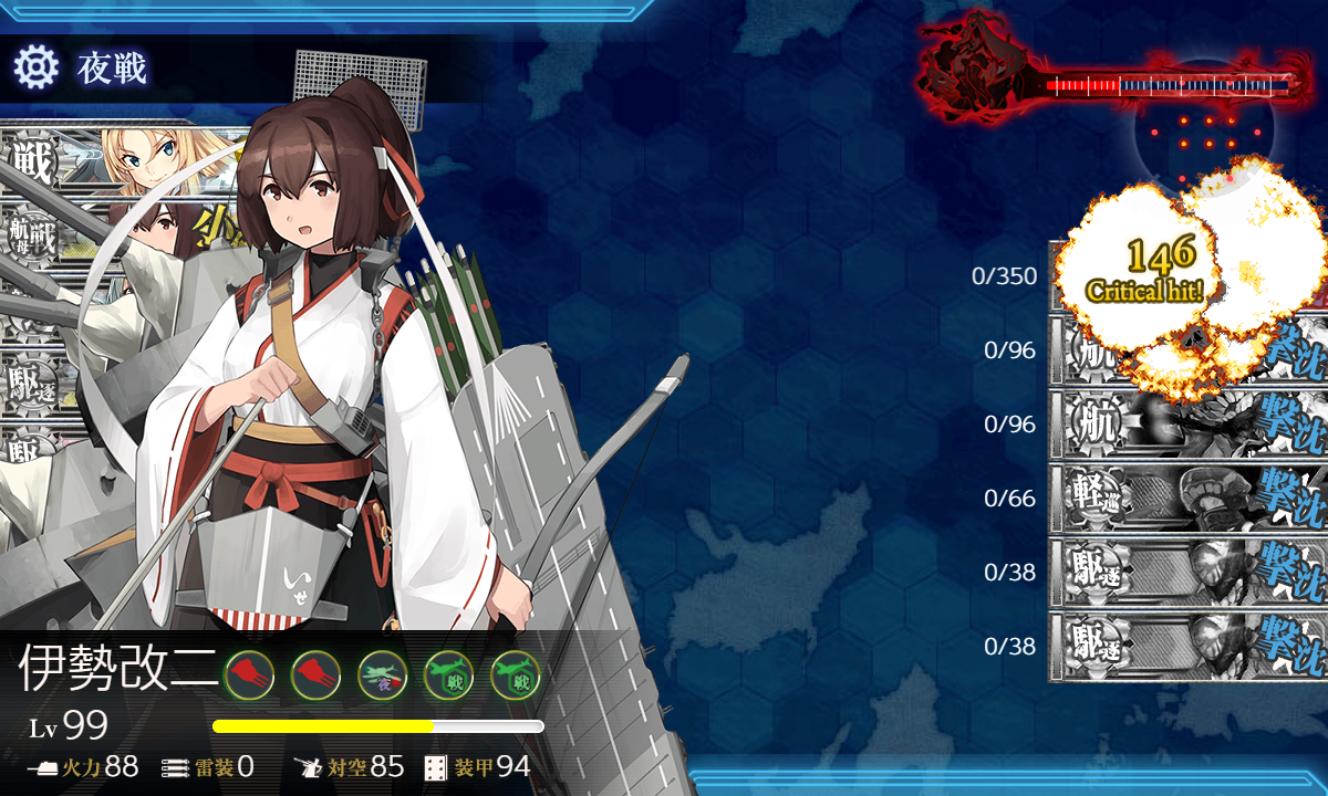 追加被弾はほぼありませんでしたが昼戦では終わらず最後は伊勢。