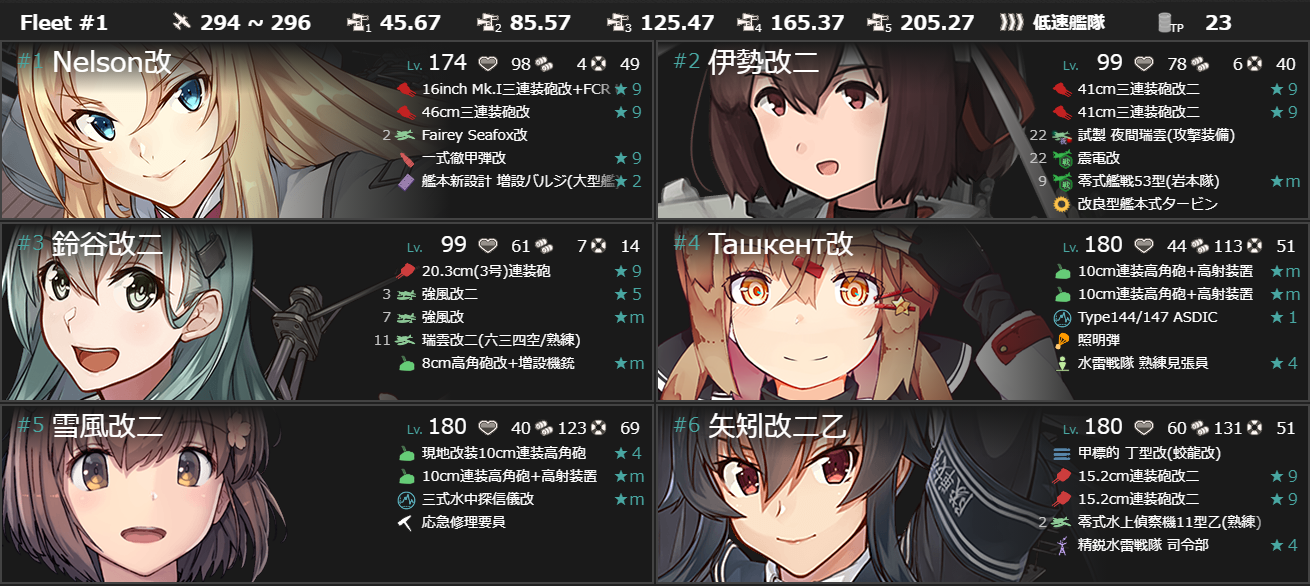 まぁどちらも編成を入れ替える必要があるものの資源消費に関しては大したことないのでイベントに向けて資源は問題ないんですけど[試製20.3cm(4号)連装砲]の実装とか開発運の悪さで改修計画が狂って[一式徹甲弾改]の改修が想像より進んでないのがちょっと気になりますかねぇ……"潜水艦"が重要っぽいのであんまり関係なさそうな気もしますけど。