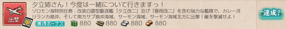 最後の【新任務】はこんな感じでした。南方海域(5-*)、それも[#5-3,#5-5]指定なのでそこそこな難易度の任務ですが旗艦指定はないので大和型とかを編成すれば何とかなると思います(。・Д・)ゞ